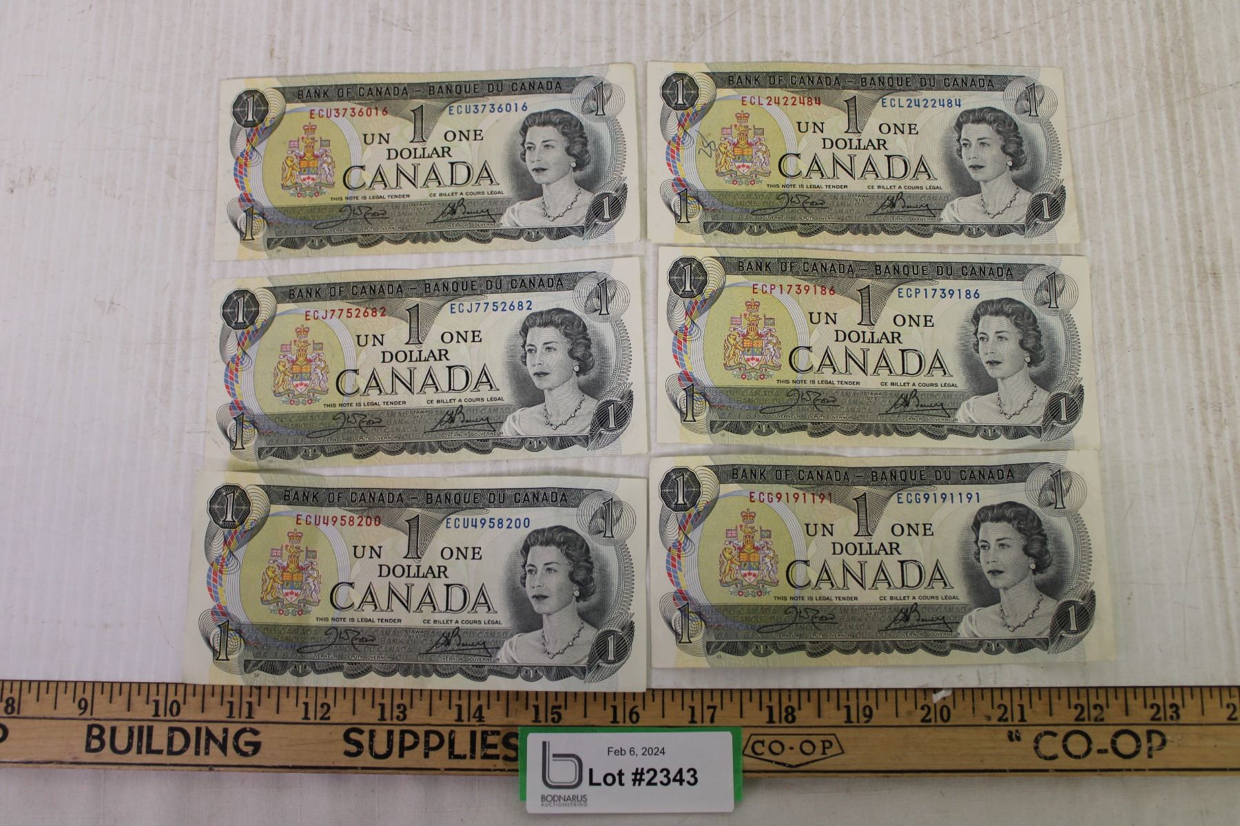 (6) Canadian 1973 $1 Bills