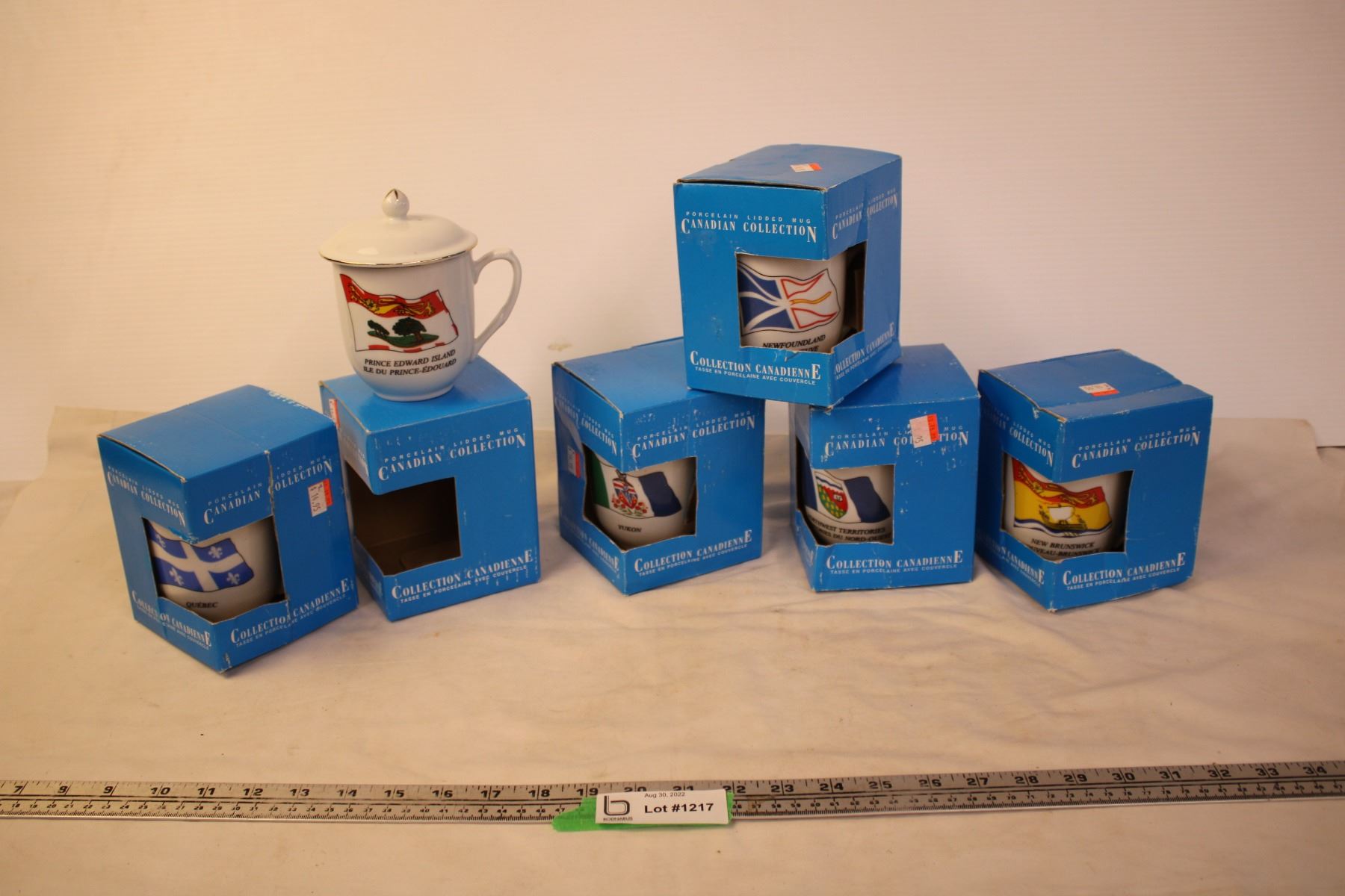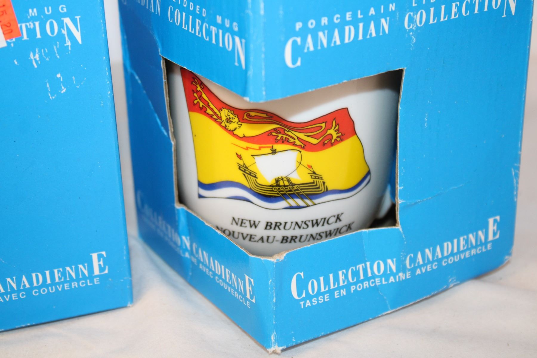 (6) Canadian Collectible Lidded Mugs (Yukon, PEI, Newfoundland, Quebec,NWT, New Brunswick)