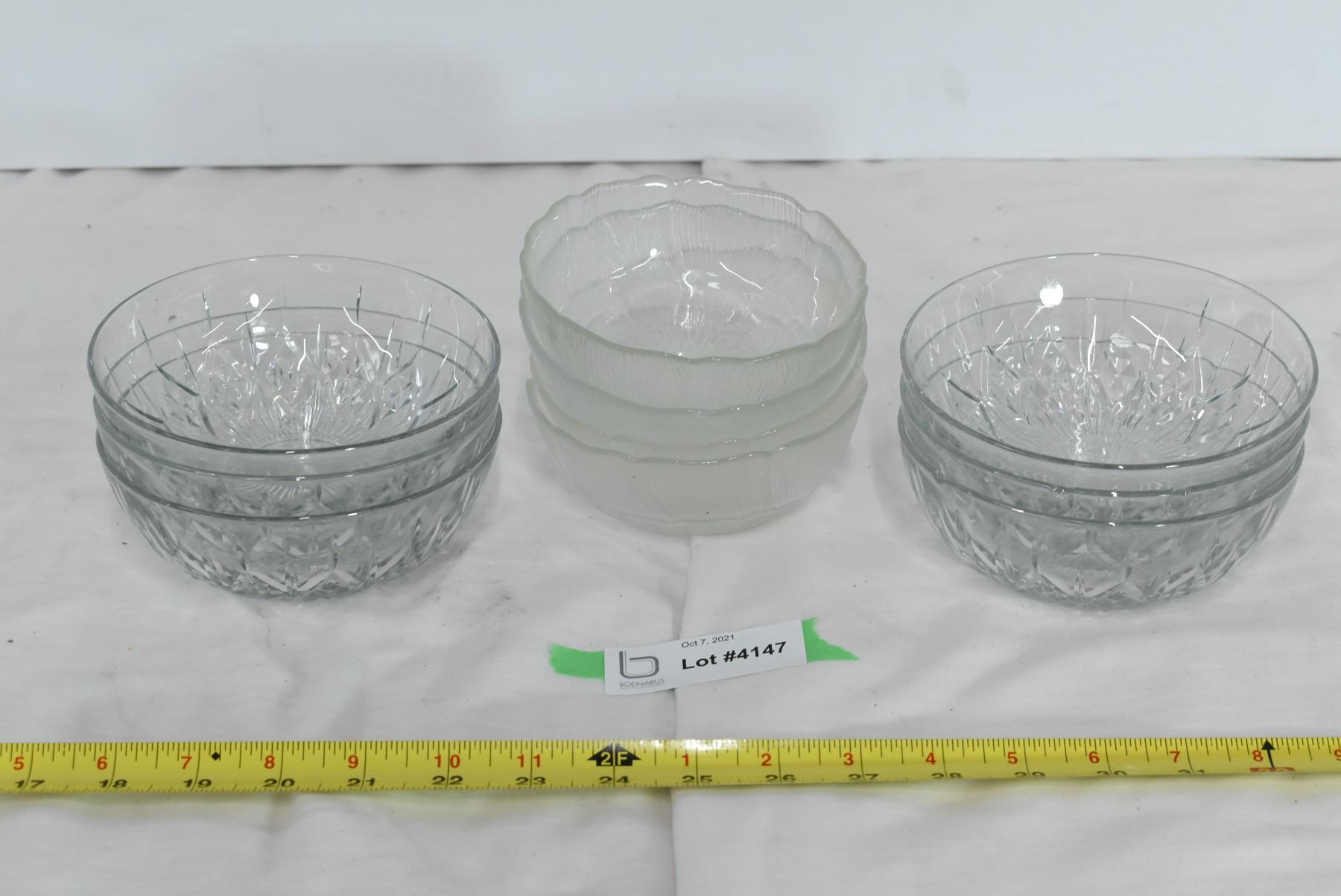 6 Clear Glass Bowls & 4 Smoky Glass Bowls