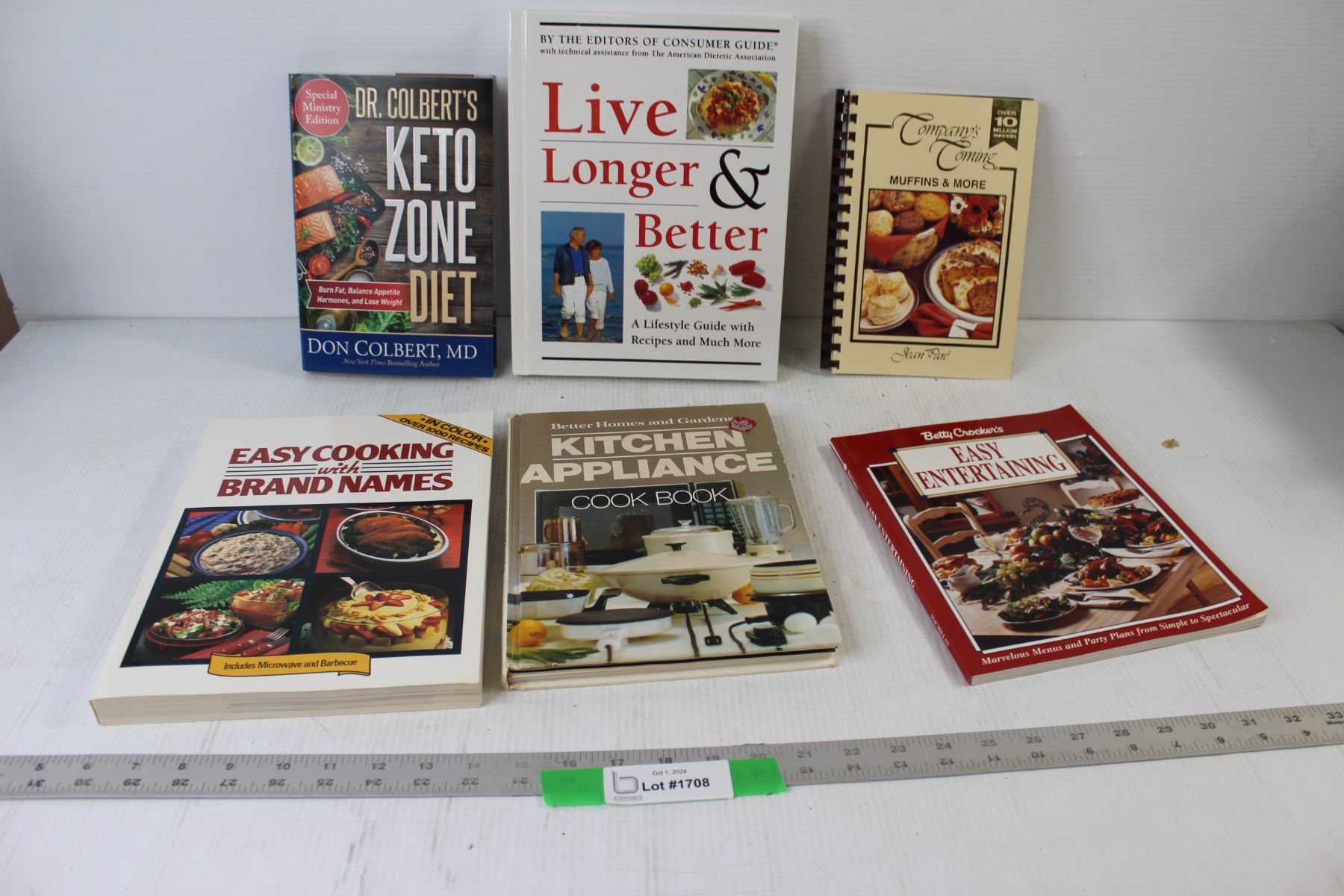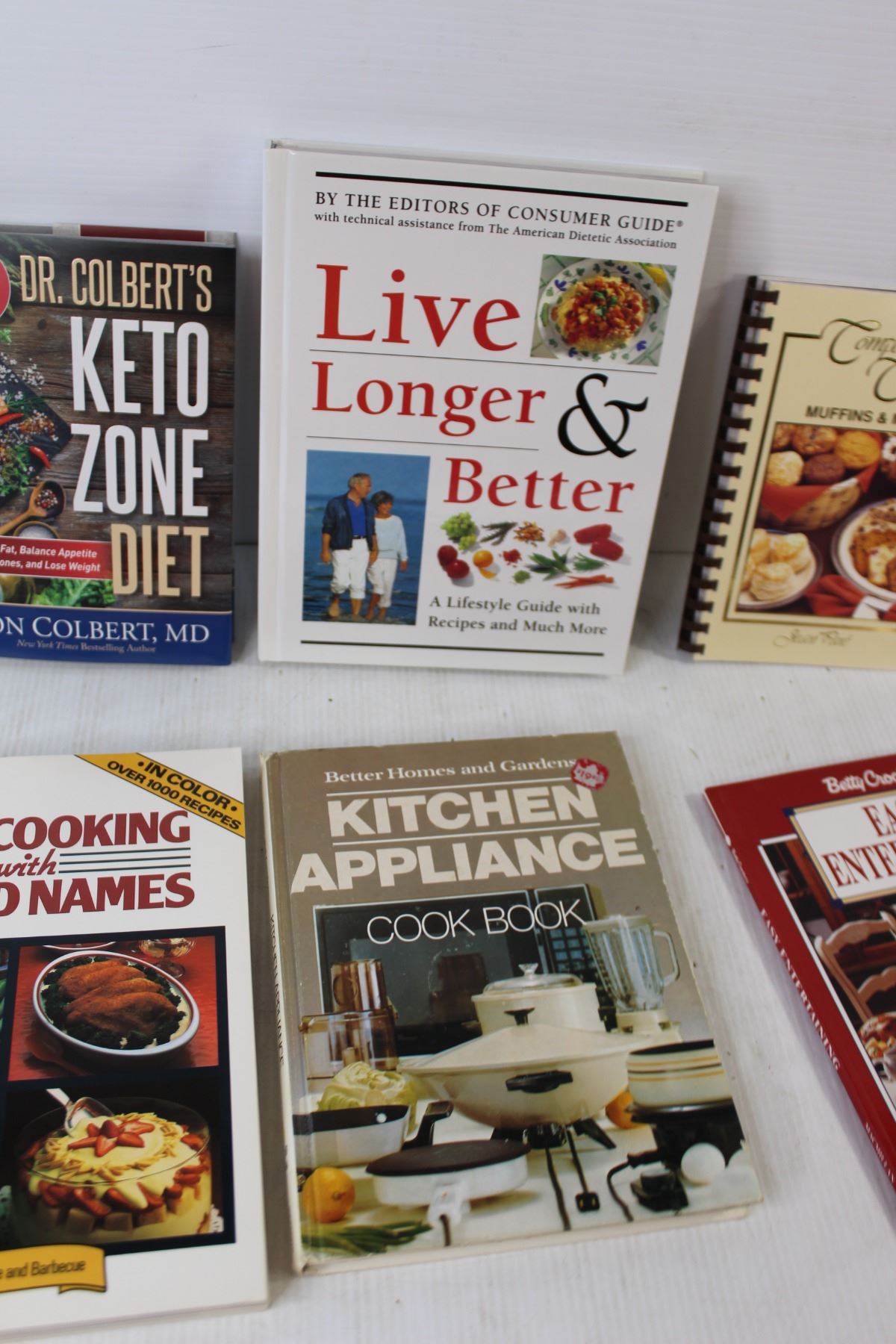 (6) Cookbooks - Betty Crockers Easy Entertaining, Live Longer and Better, Keto Zone Diet, etc.