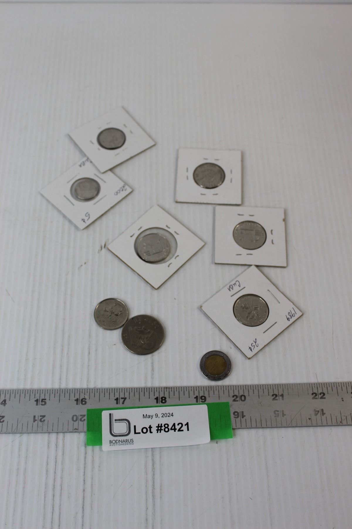 (6) Cuban Coins, (2) Mexican Coins, (1) Canadian Quarter