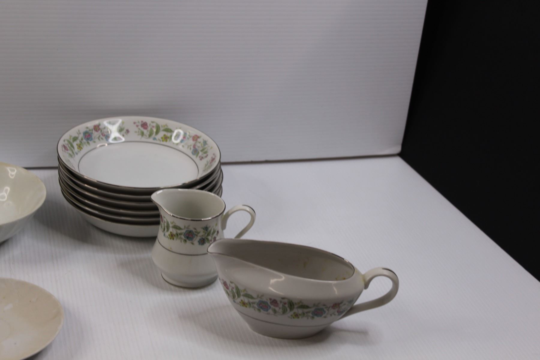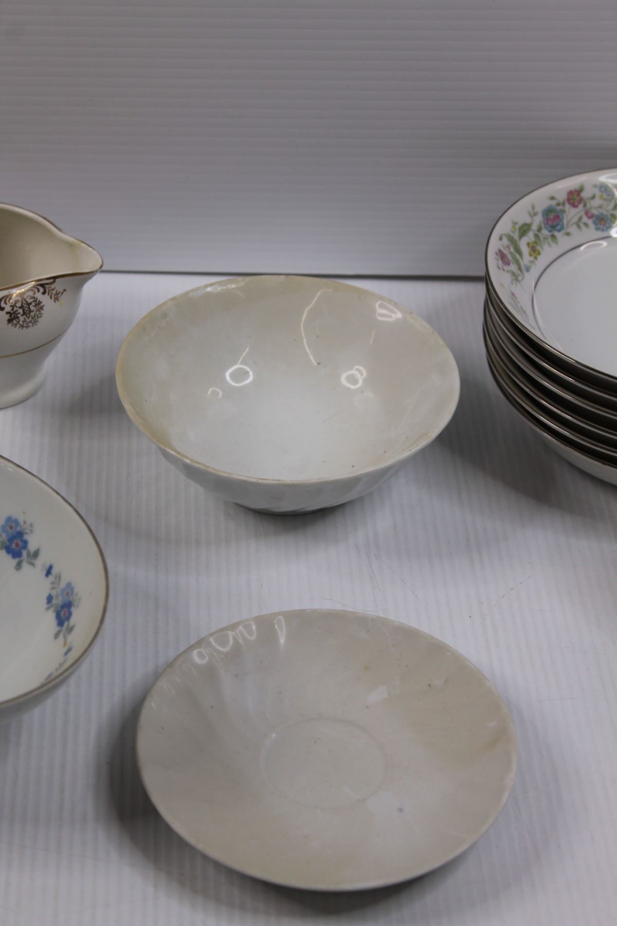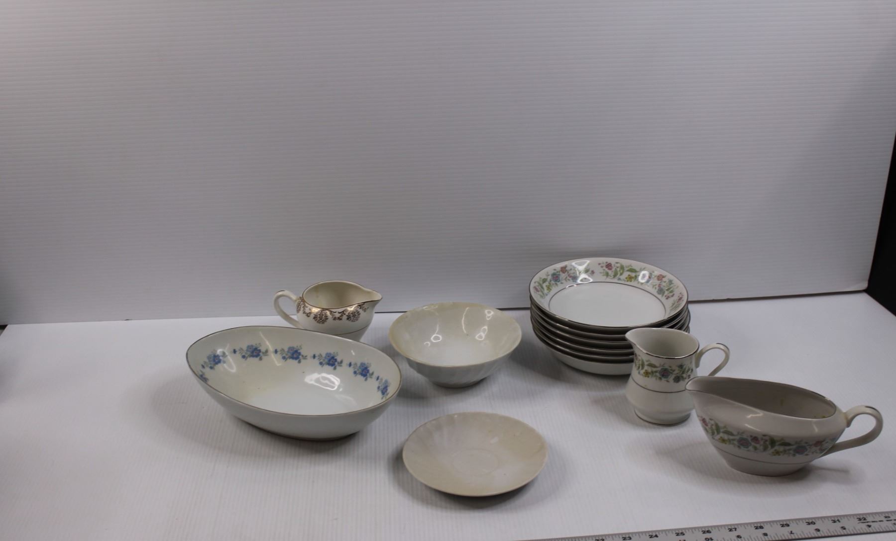 (6) Floral Towne House Fine China Bowls, Gravy Boat, Cream Pitcher, Swirl China Saucer, China 384 Serving Dish & Additional Unmarked Bowl