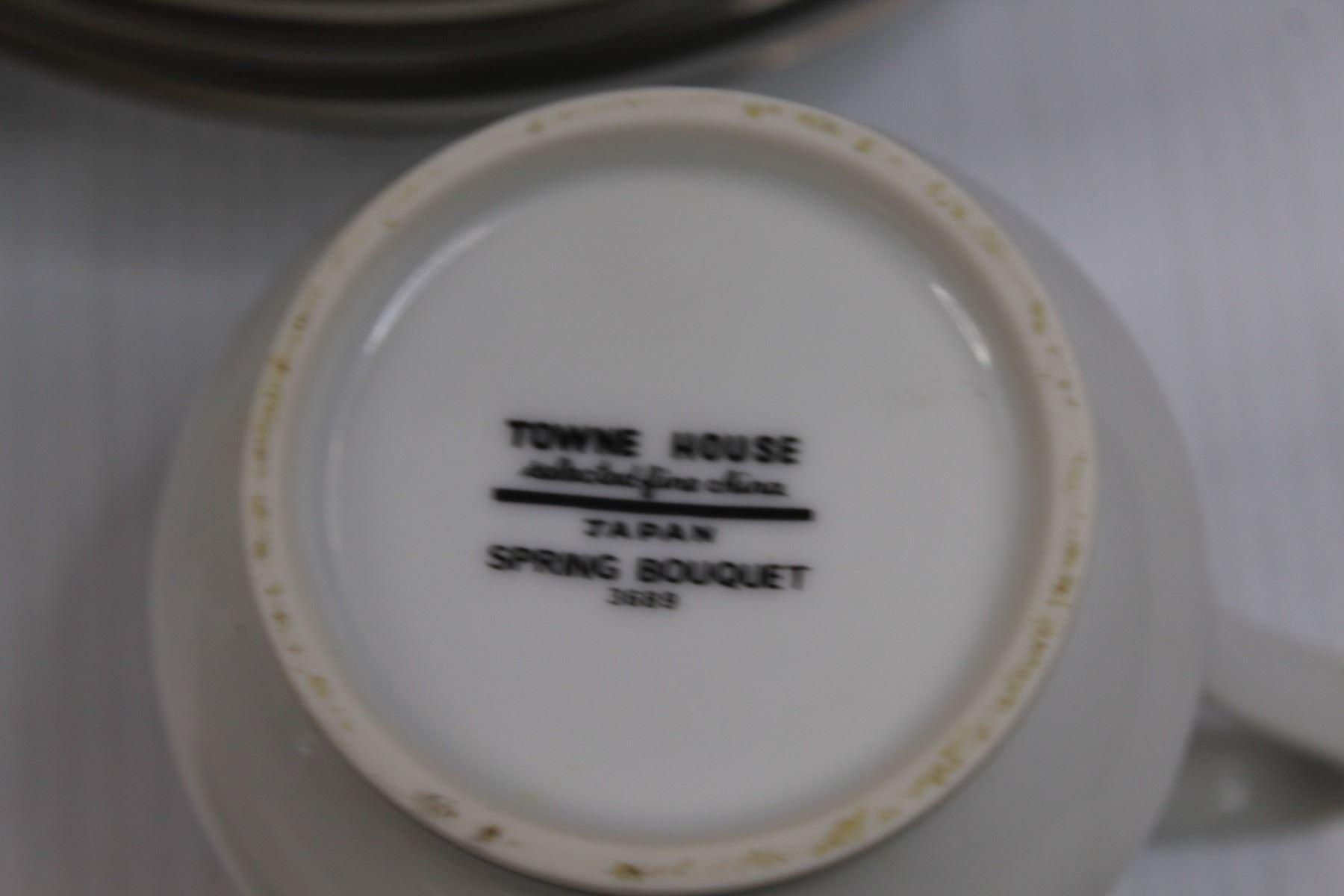 (6) Floral Towne House Fine China Bowls, Gravy Boat, Cream Pitcher, Swirl China Saucer, China 384 Se