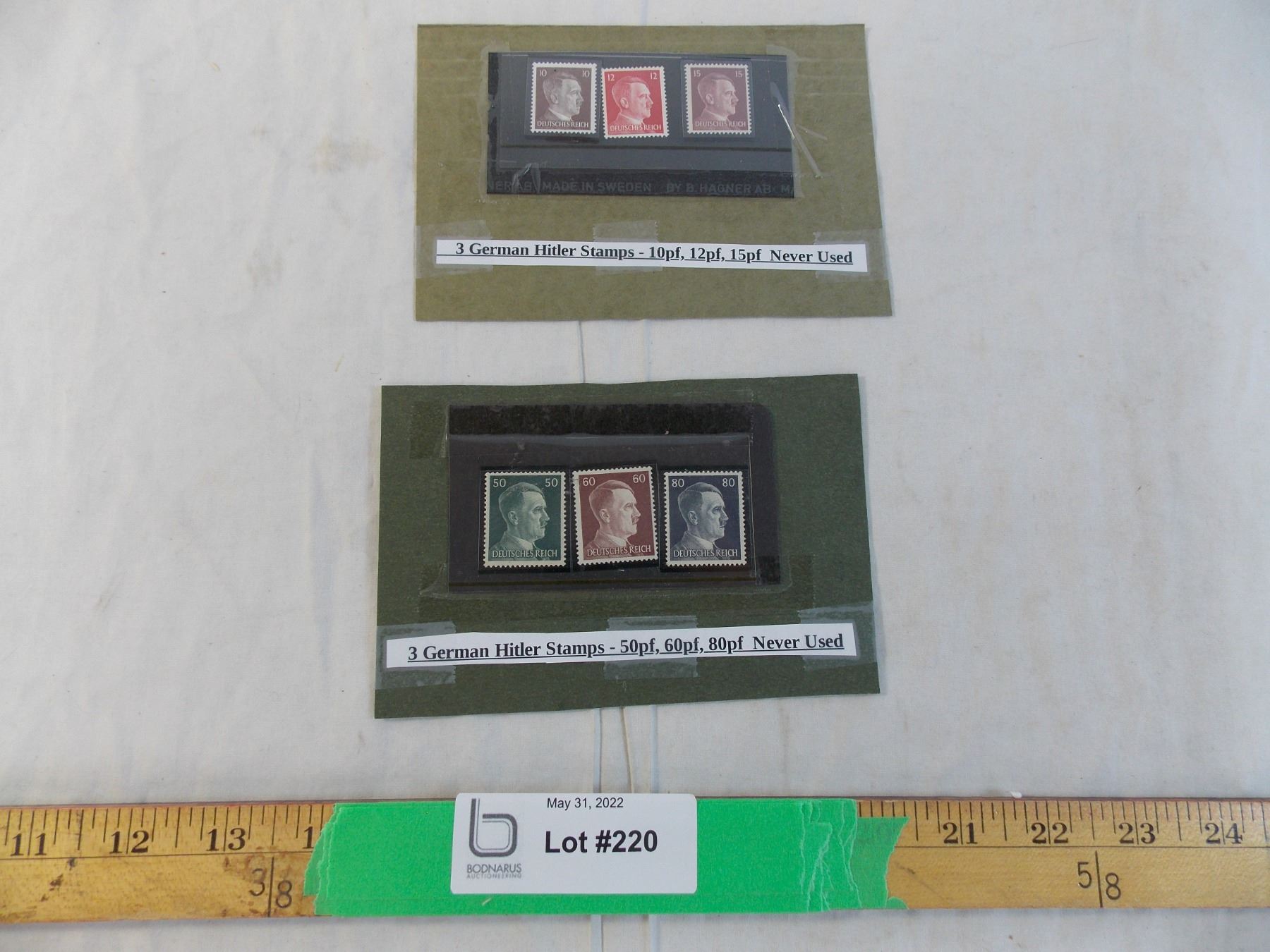 (6) German war-era Hitler Stamps (10,12,15,50,60,80)