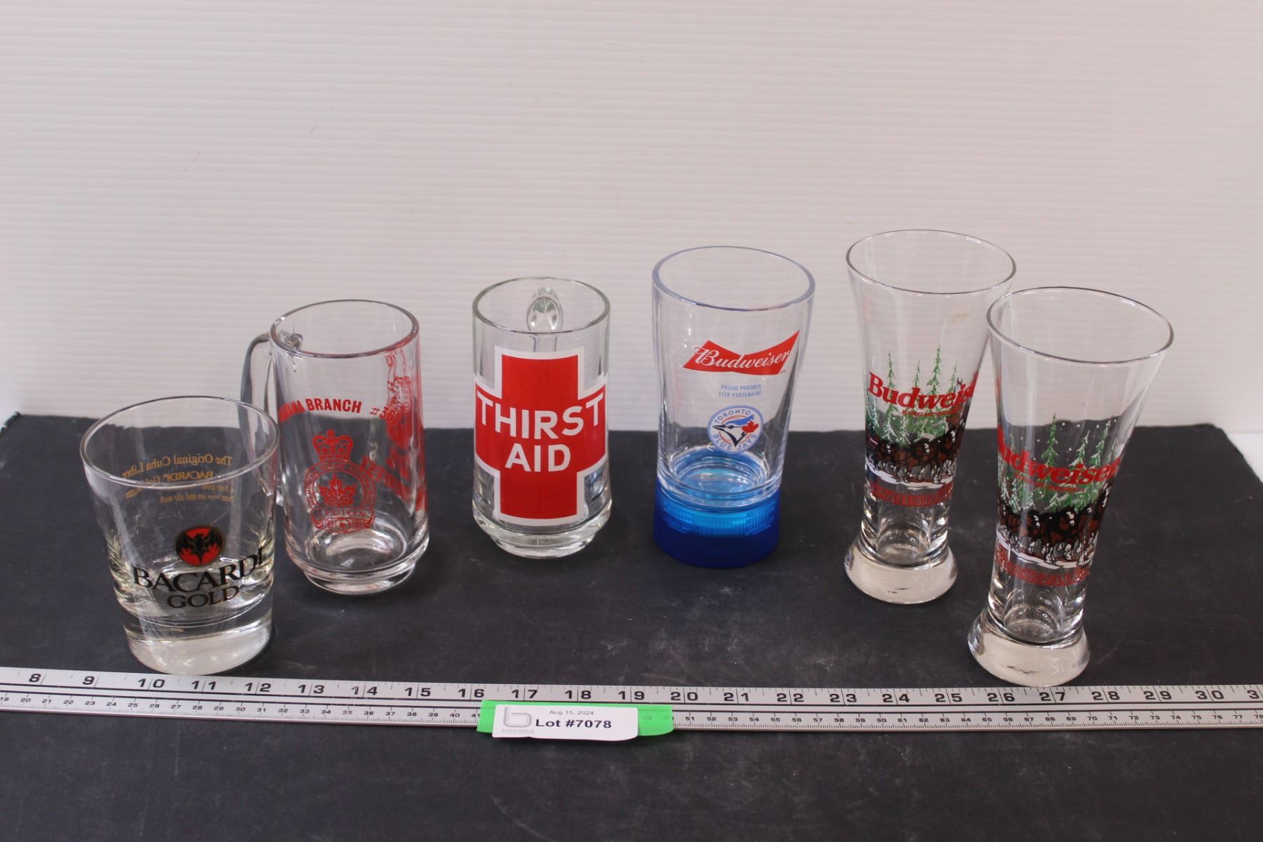 (6) Glass Liquor & Beer Mugs (Budweiser)