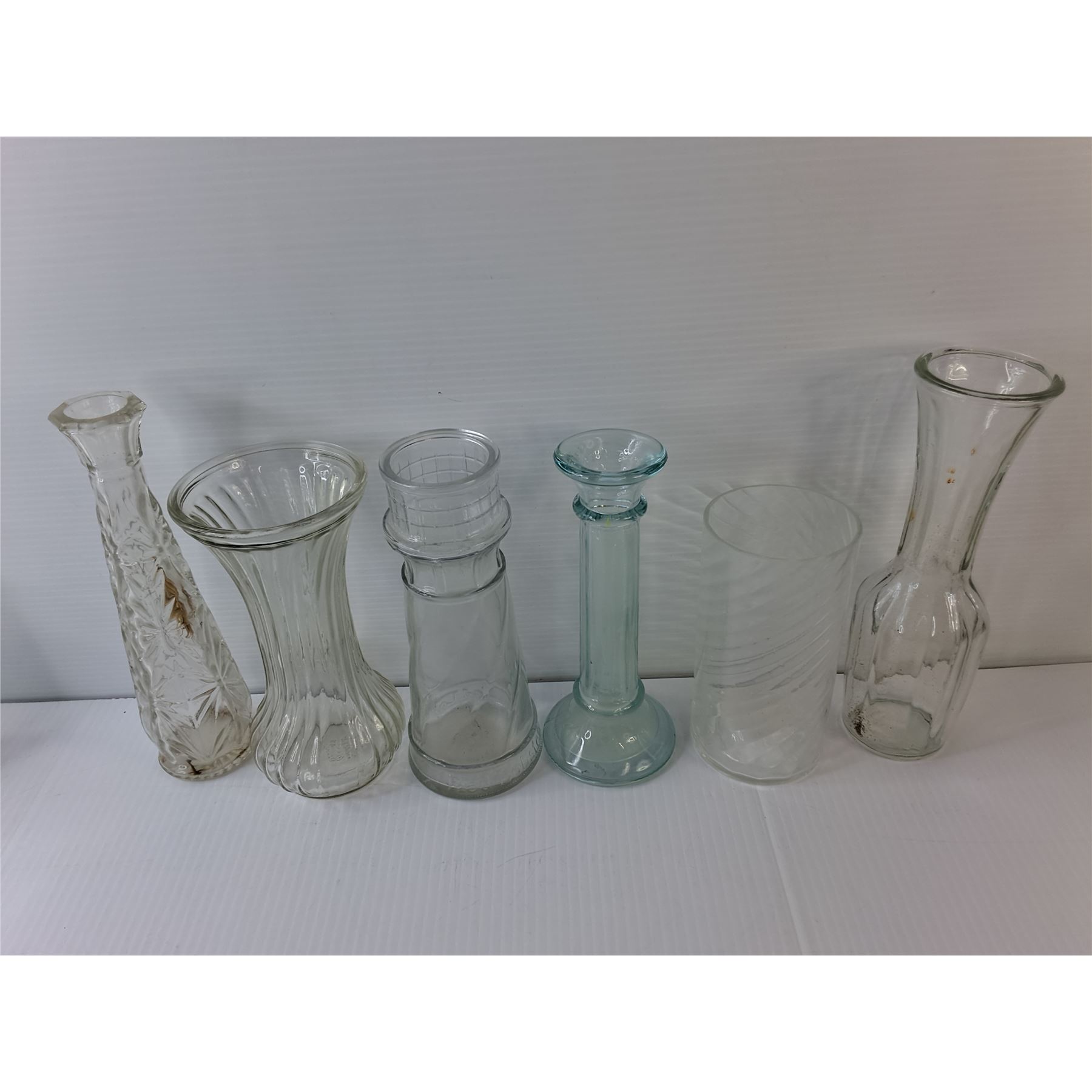 (6)Glass Vases Up to 9  Tall, (4) Christmas Mugs/Glasses, Santa Napkin Holder
