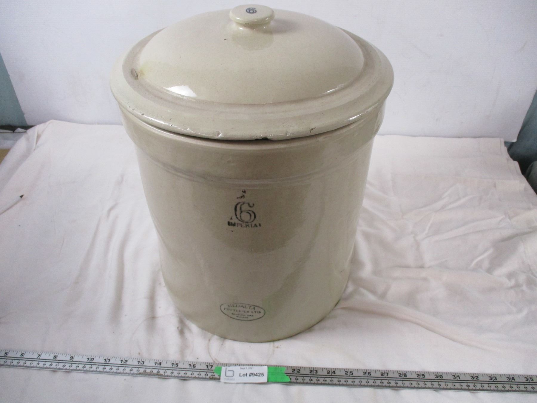 6 Imperial Gal Medalta Potteries Stoneware Crock with Lid