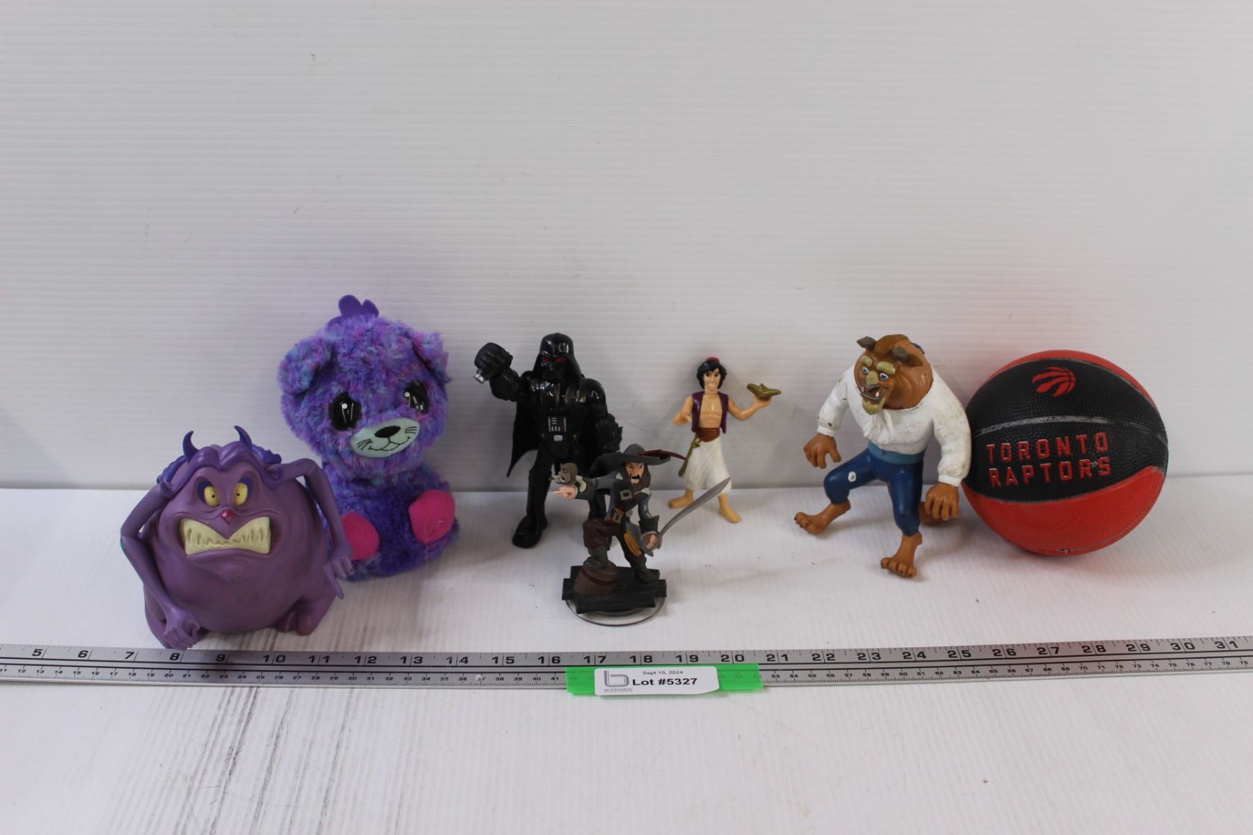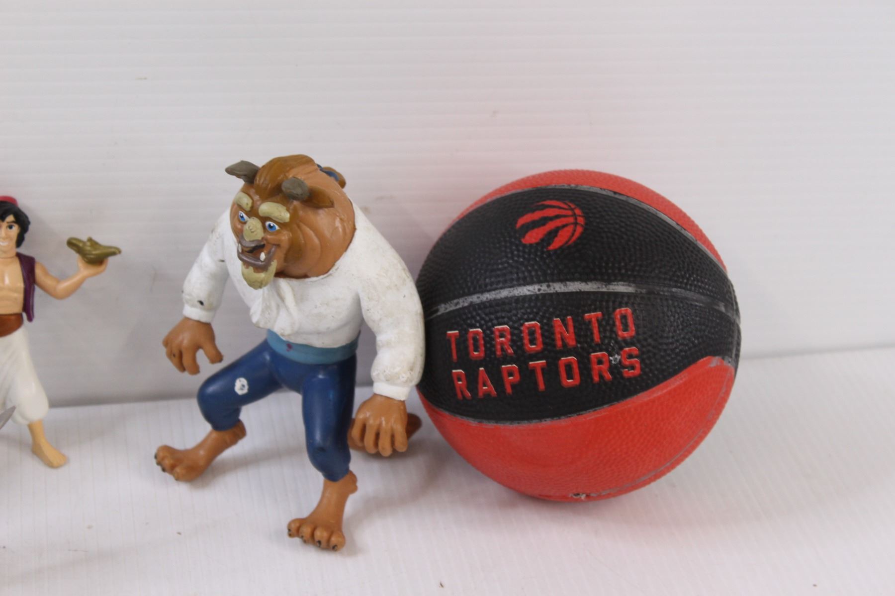 (6) Kid's Toys: Aladdin, Beast, Hercules, Darth Vader, Toronto Raptors Mini Basketball