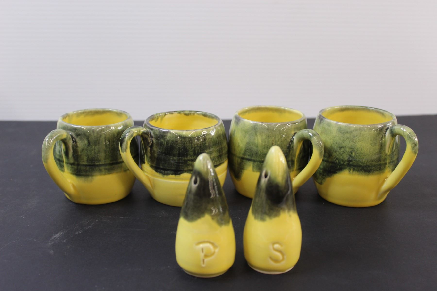 (6) Lela Filipovski Pottery Canada: 4 Coffee Cups & Salt and Pepper set