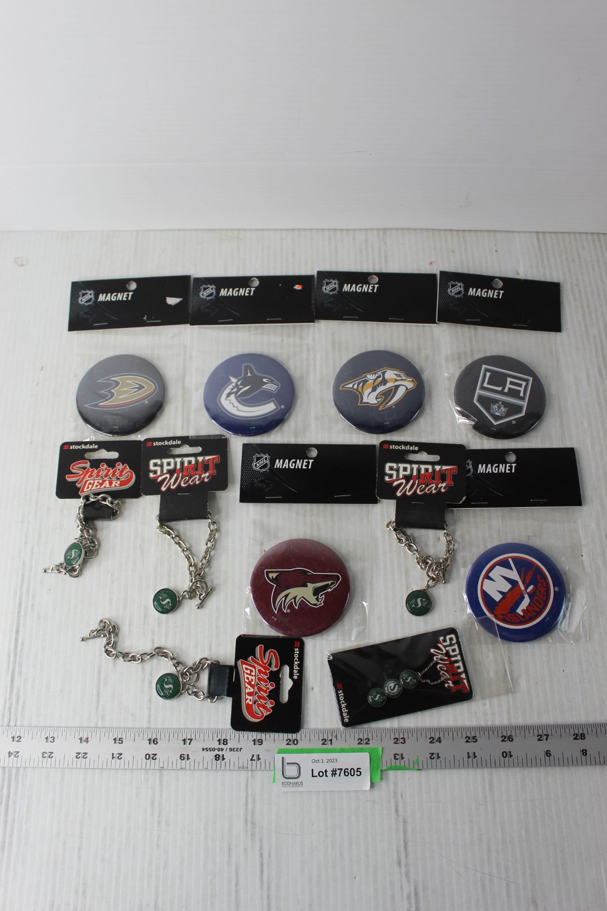 (6) NHL Magnets- Rangers, Ducks, Kings, Etc. and (5) Sask Roughriders Charm Bracelets (NIB)