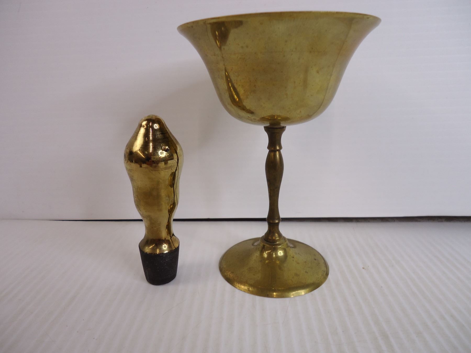 (6) Pieces of Vintage Brass-Hanging Light, Bottle Stopper, Goblet, Jug, Vase, Pillar Candle Holder