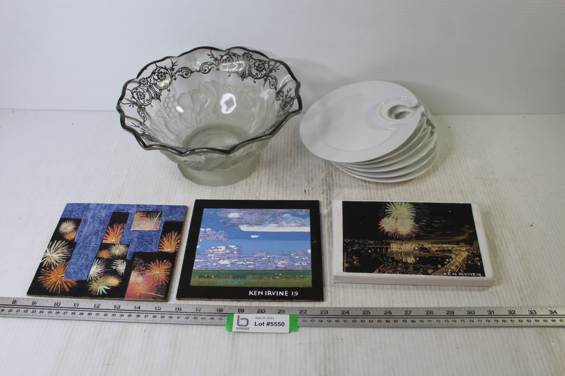 (6) Plates W/Holes? - Vintage Punch Bowl - (3) Small Pictures
