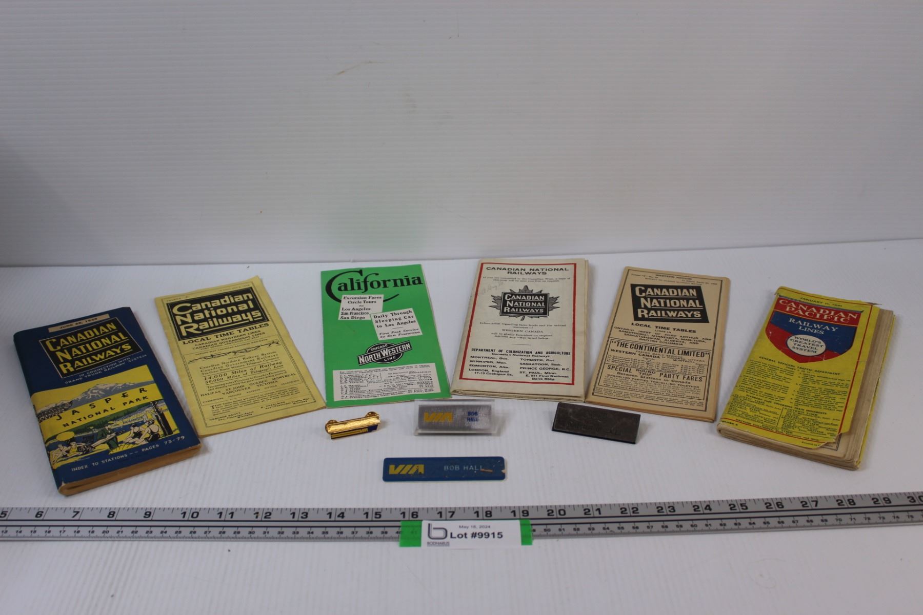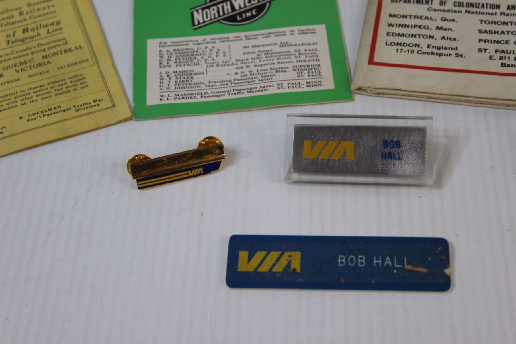 (6) Railway System Brochures 1930's & (4) VIA Rail Name Tags