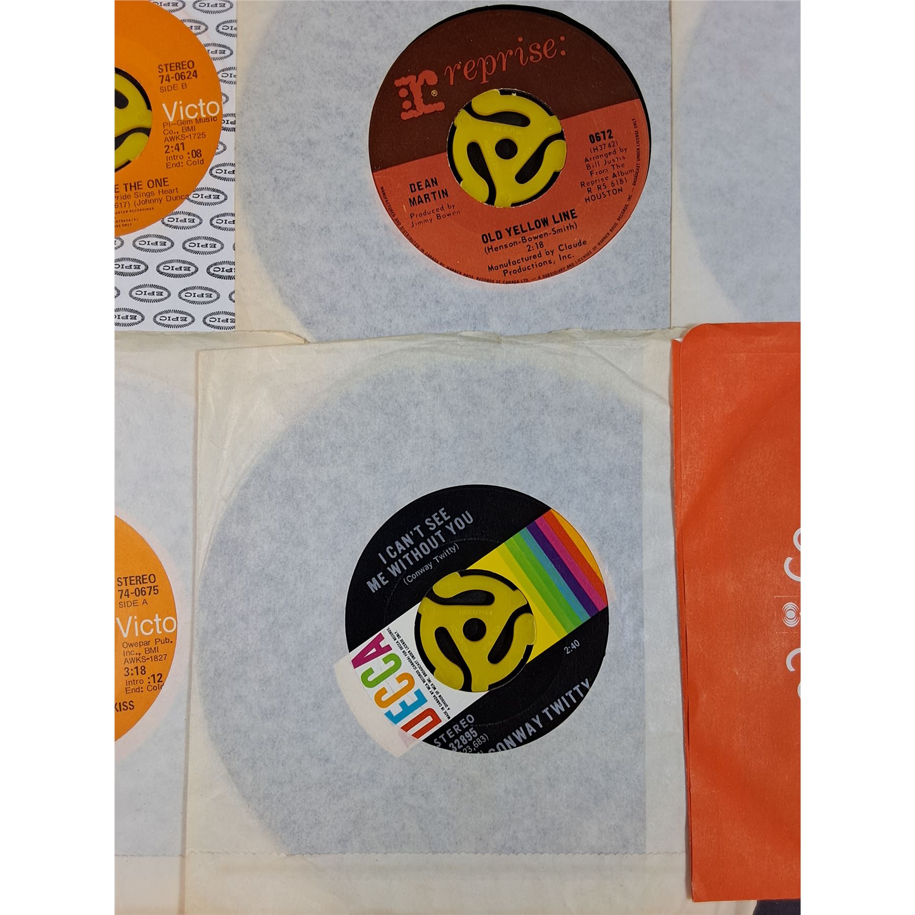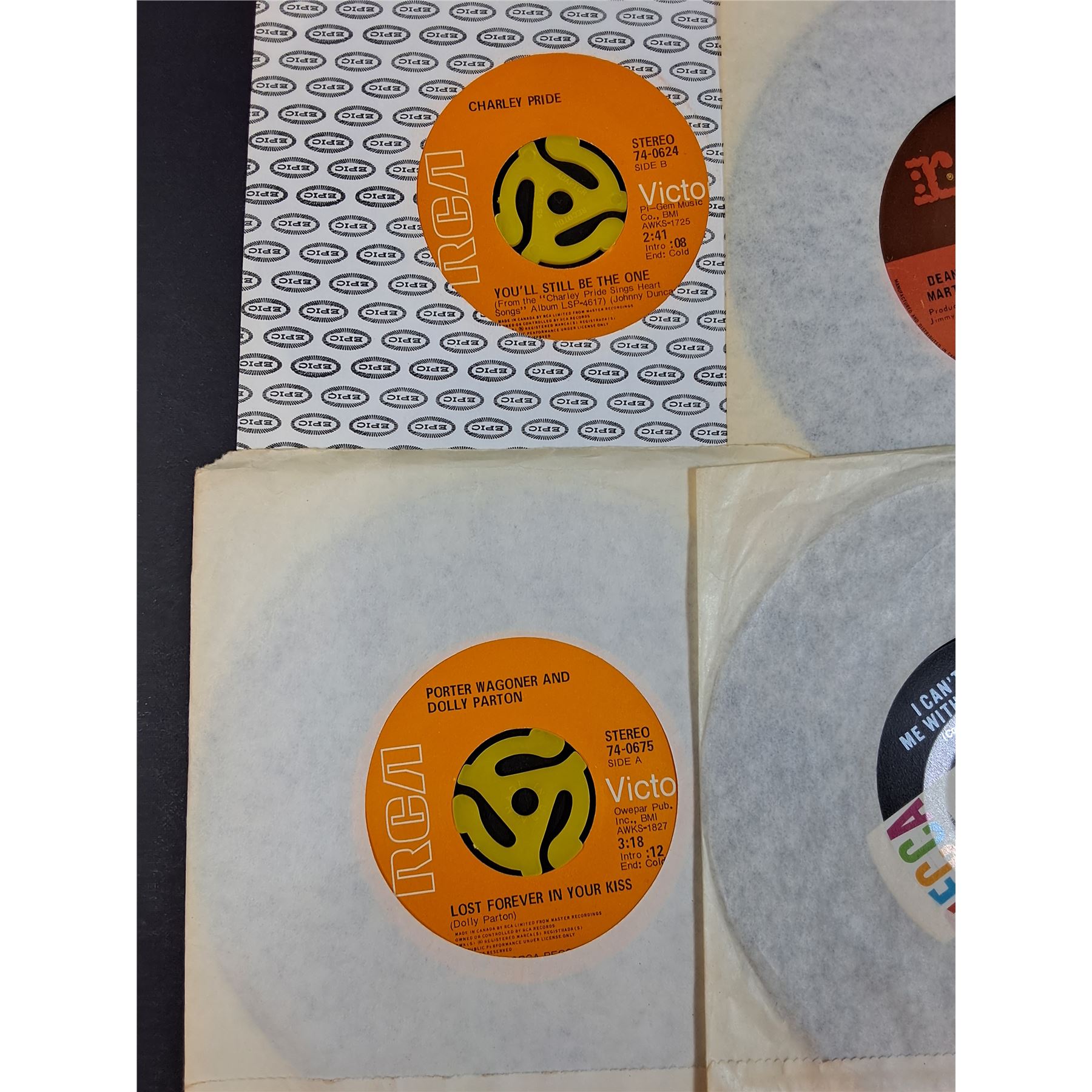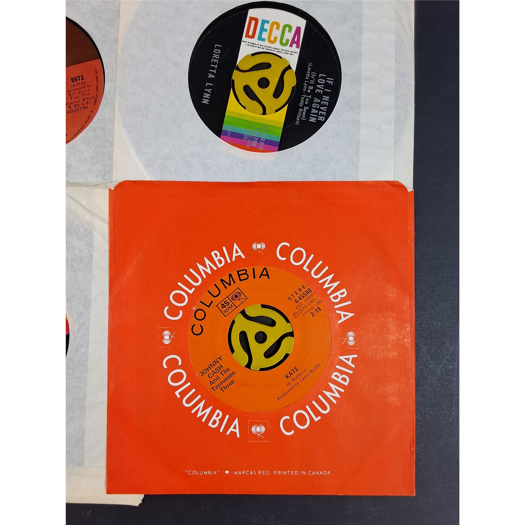 (6) Records: 45 Size - Johnny Cash, Dolly Parton, ,Charley Pride, Dean Martin, Misc