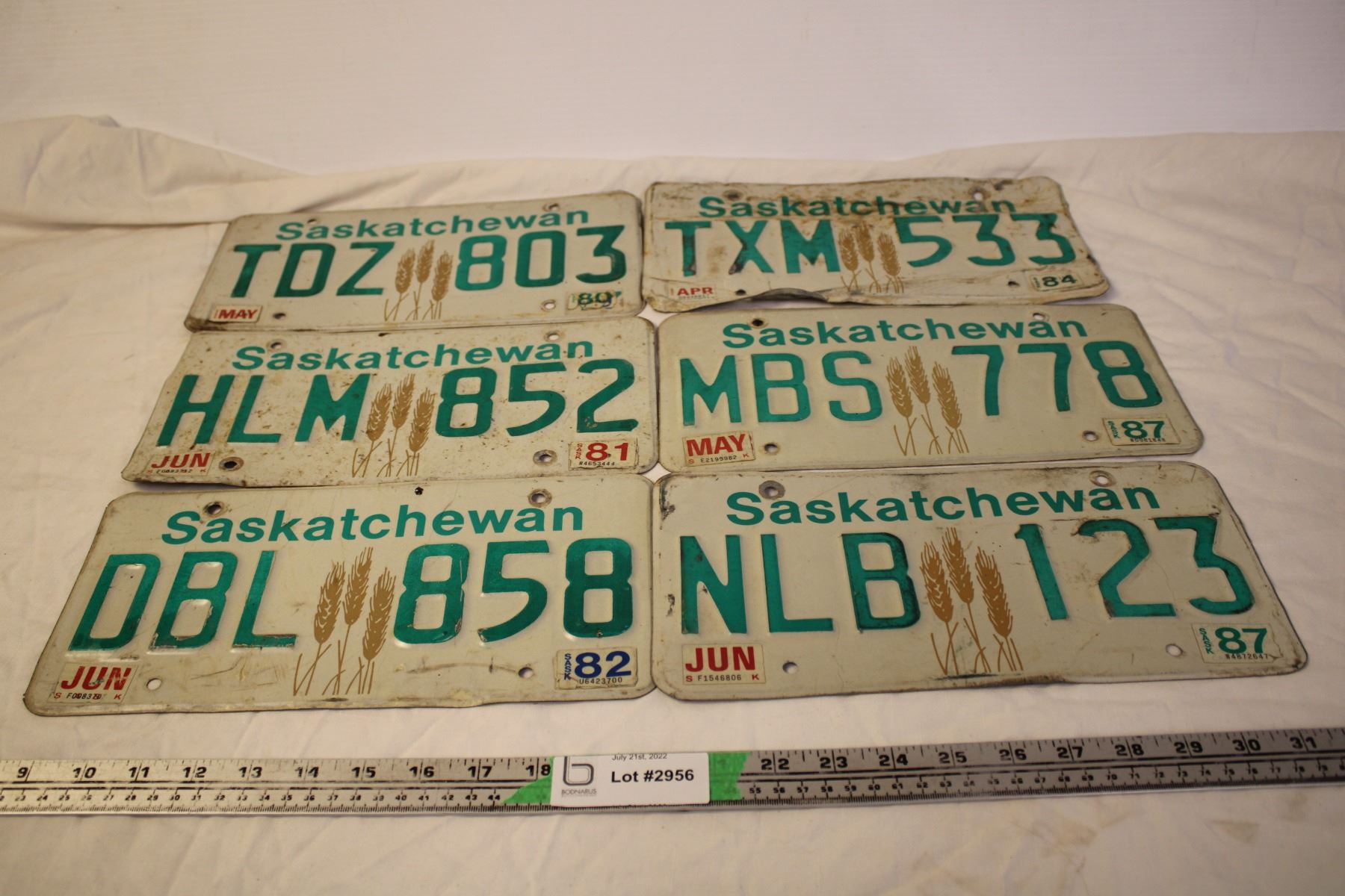 (6) Saskatchewan 1980, 81, 82, 84, 87, 87 - License Plates