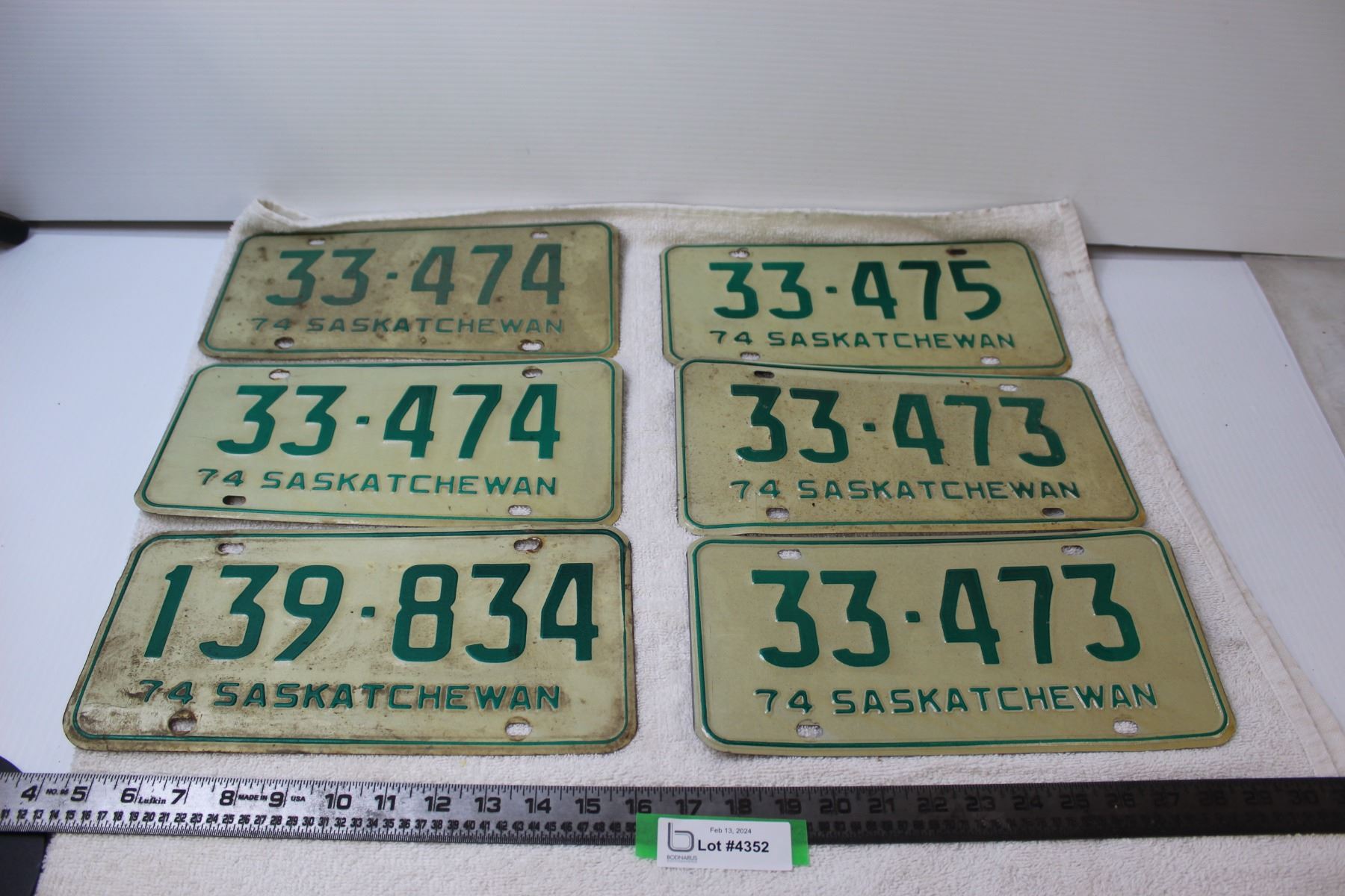 (6) Saskatchewan License Plates 1974 - (2 Pairs)