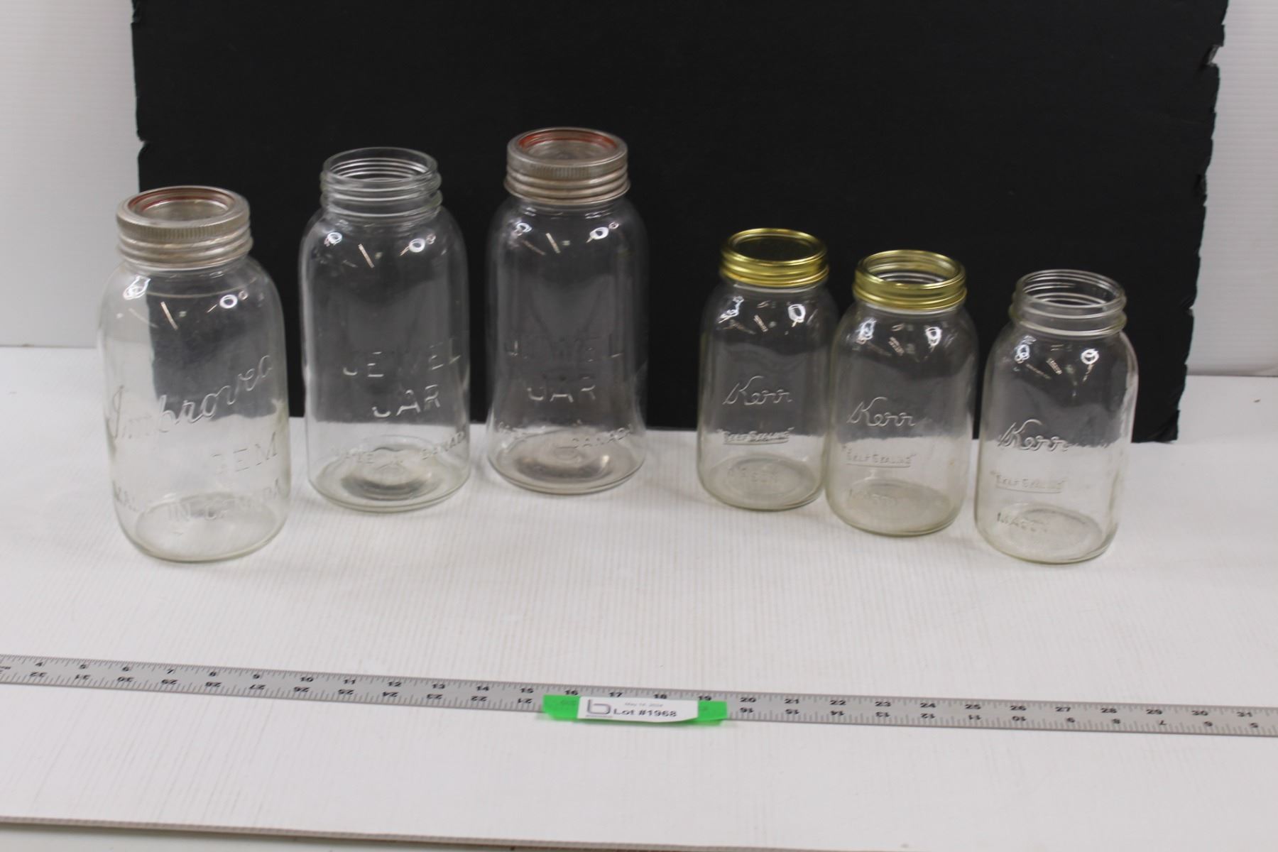 (6) Sealer Jars Of Various Makers & Size - Kerr, Improved Gem, Jewel
