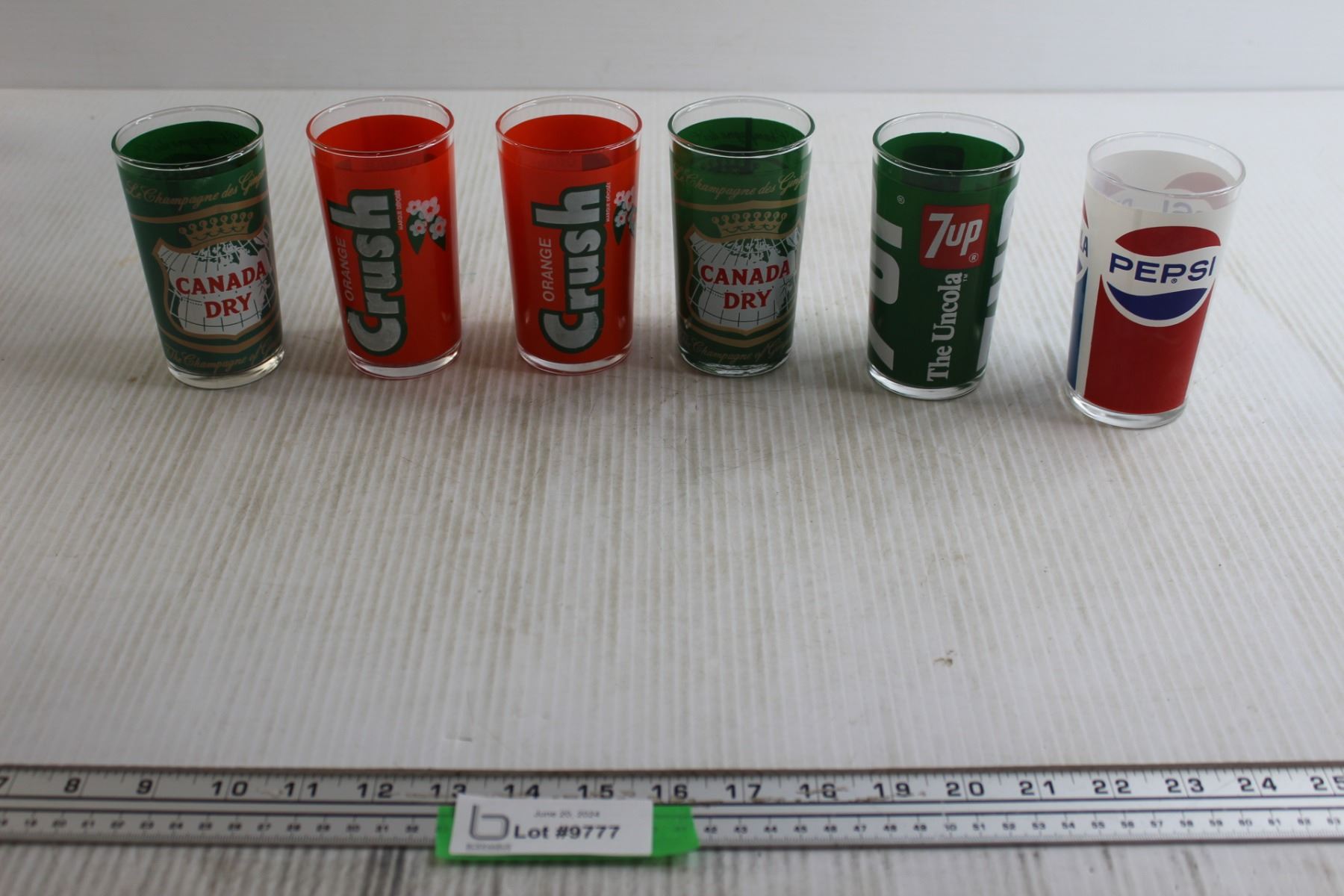 (6) Soda Glasses - Orange Crush, Canada Dry, Pepsi, 7Up