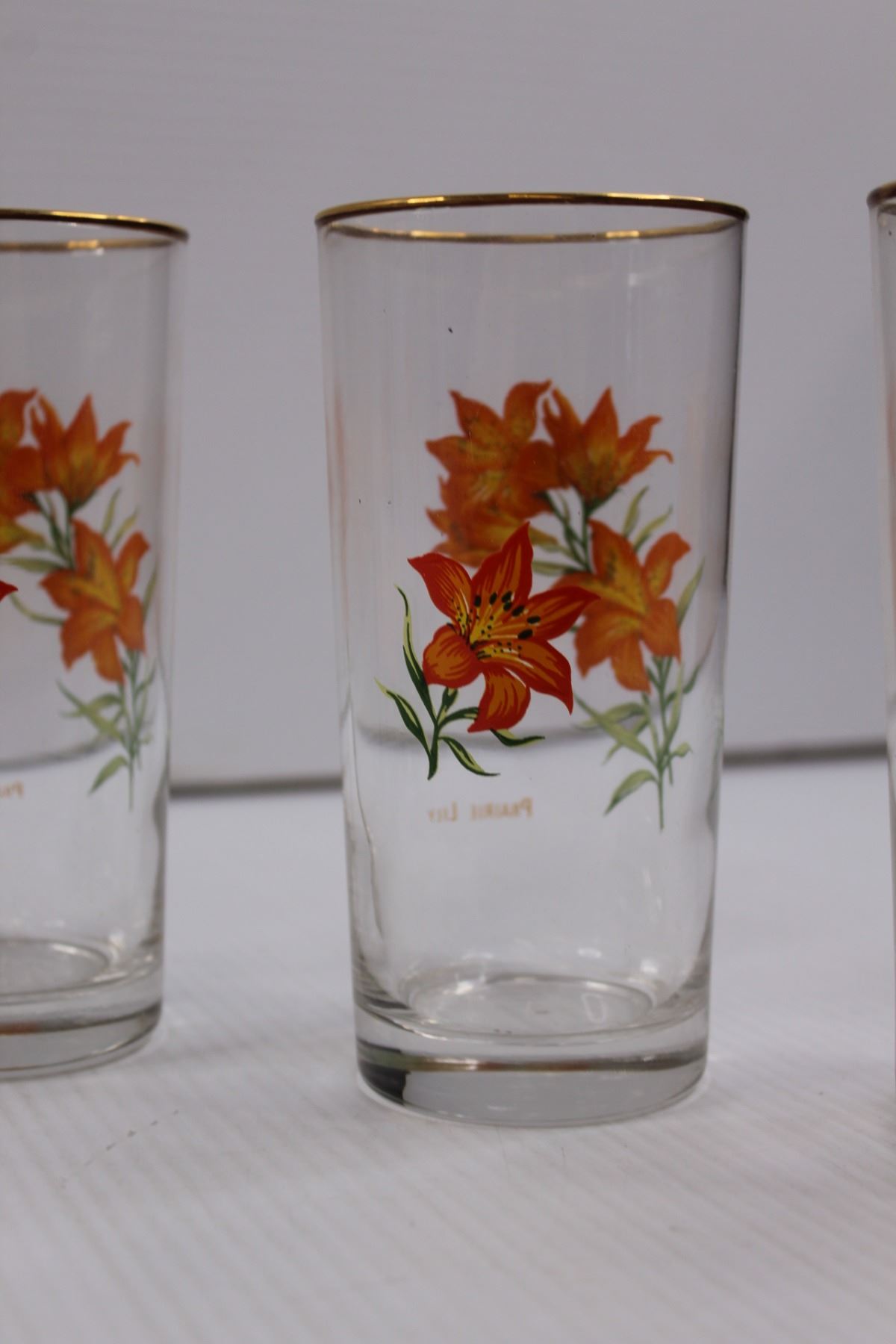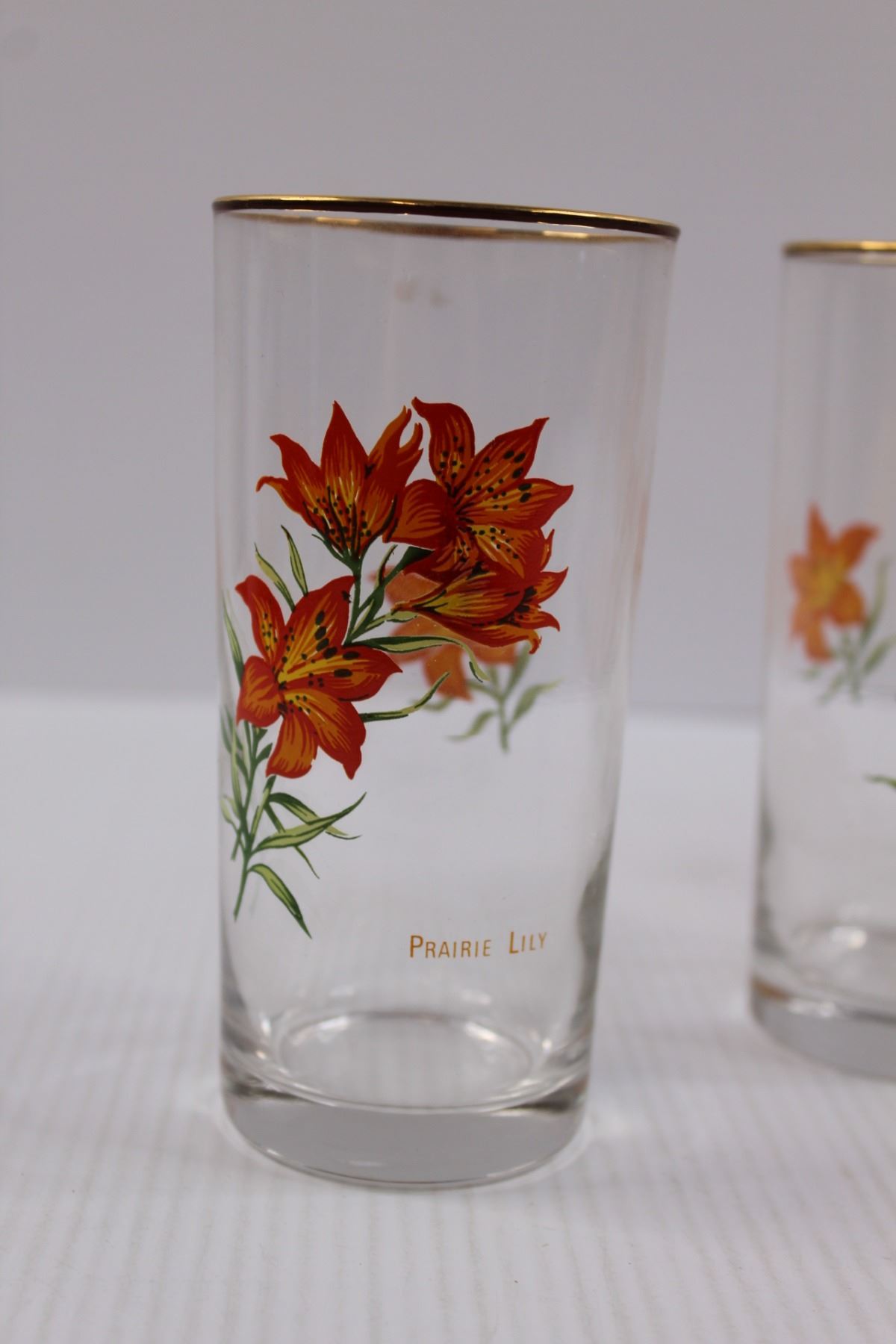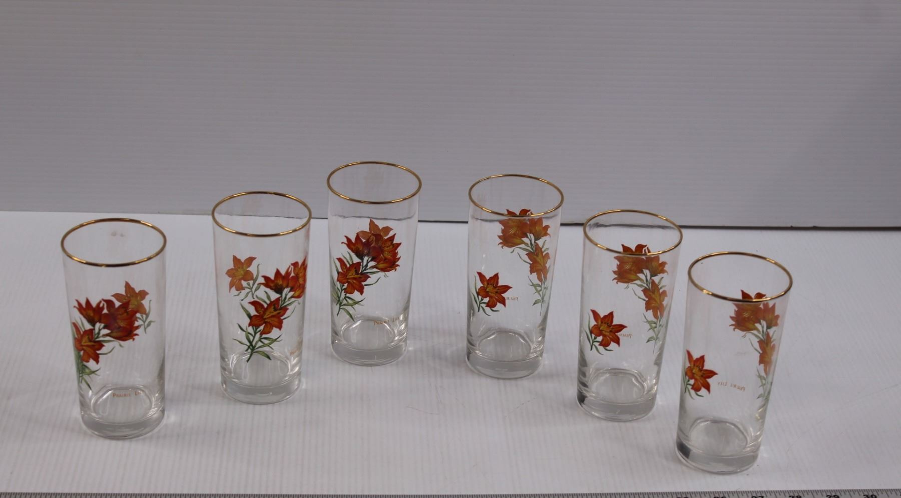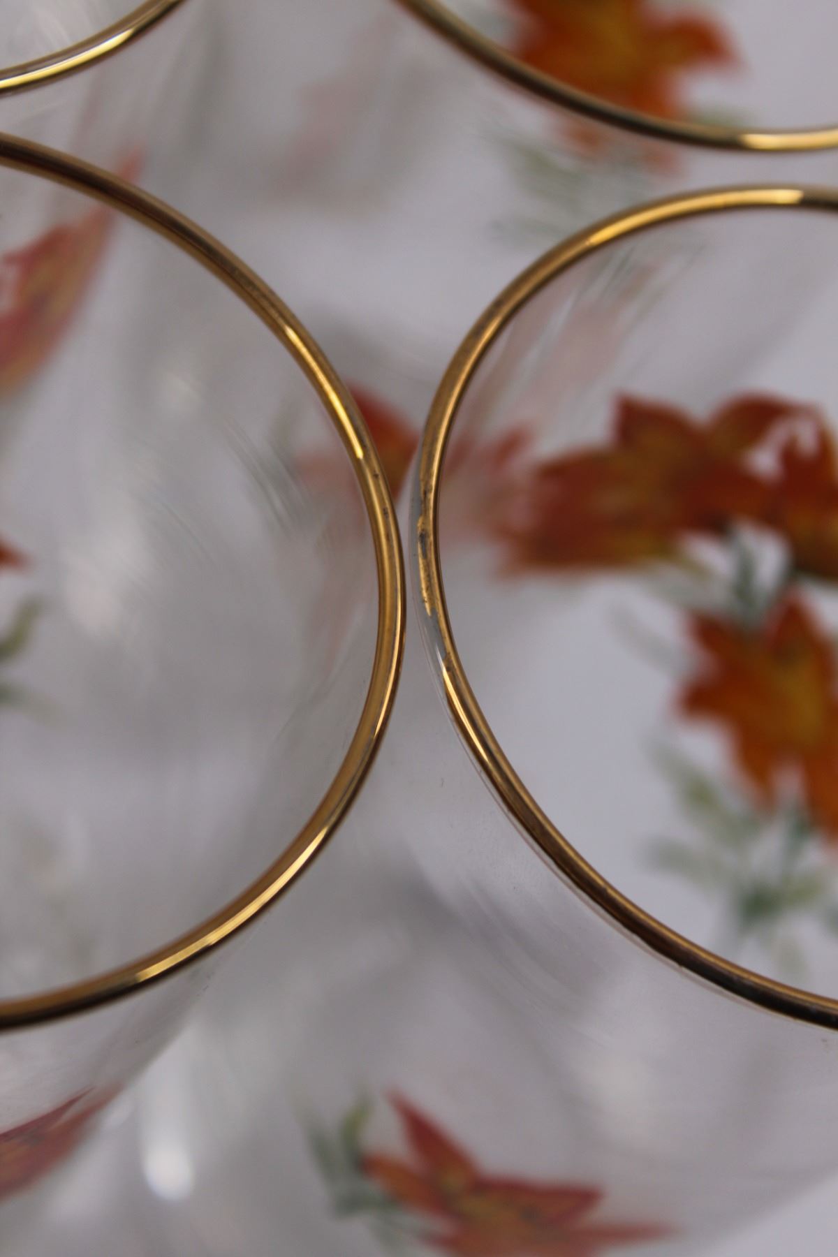 (6) Tiger Lily (Prairie Lily) Glasses w/Gold Rim