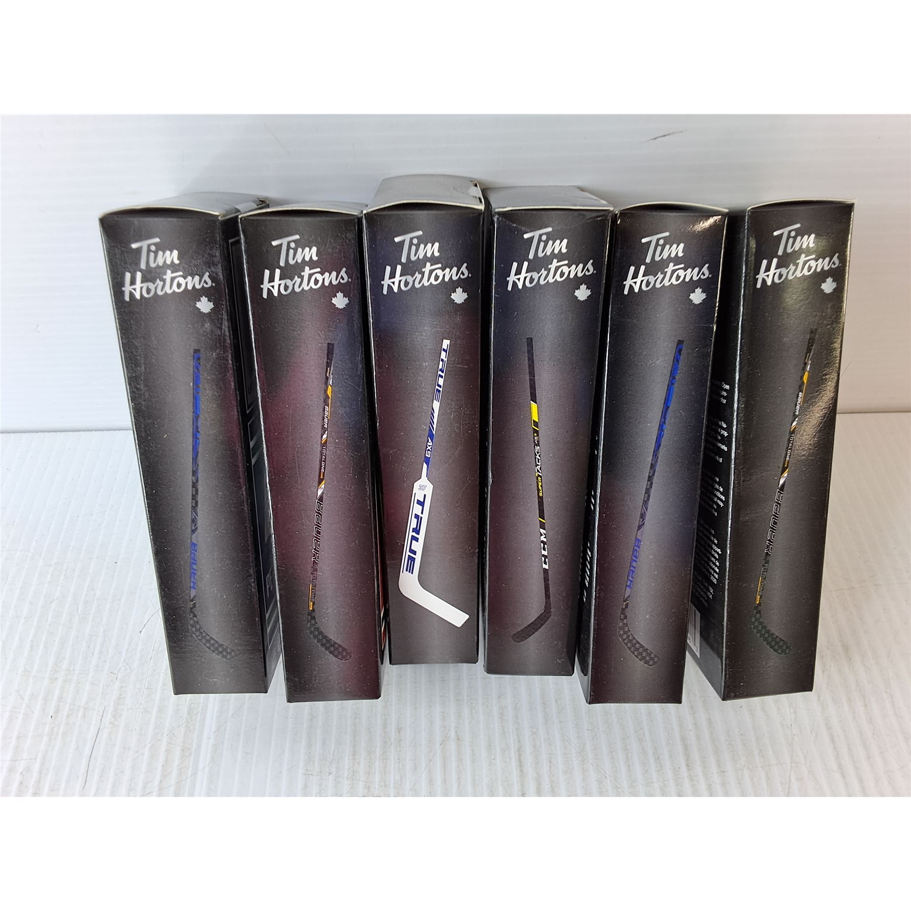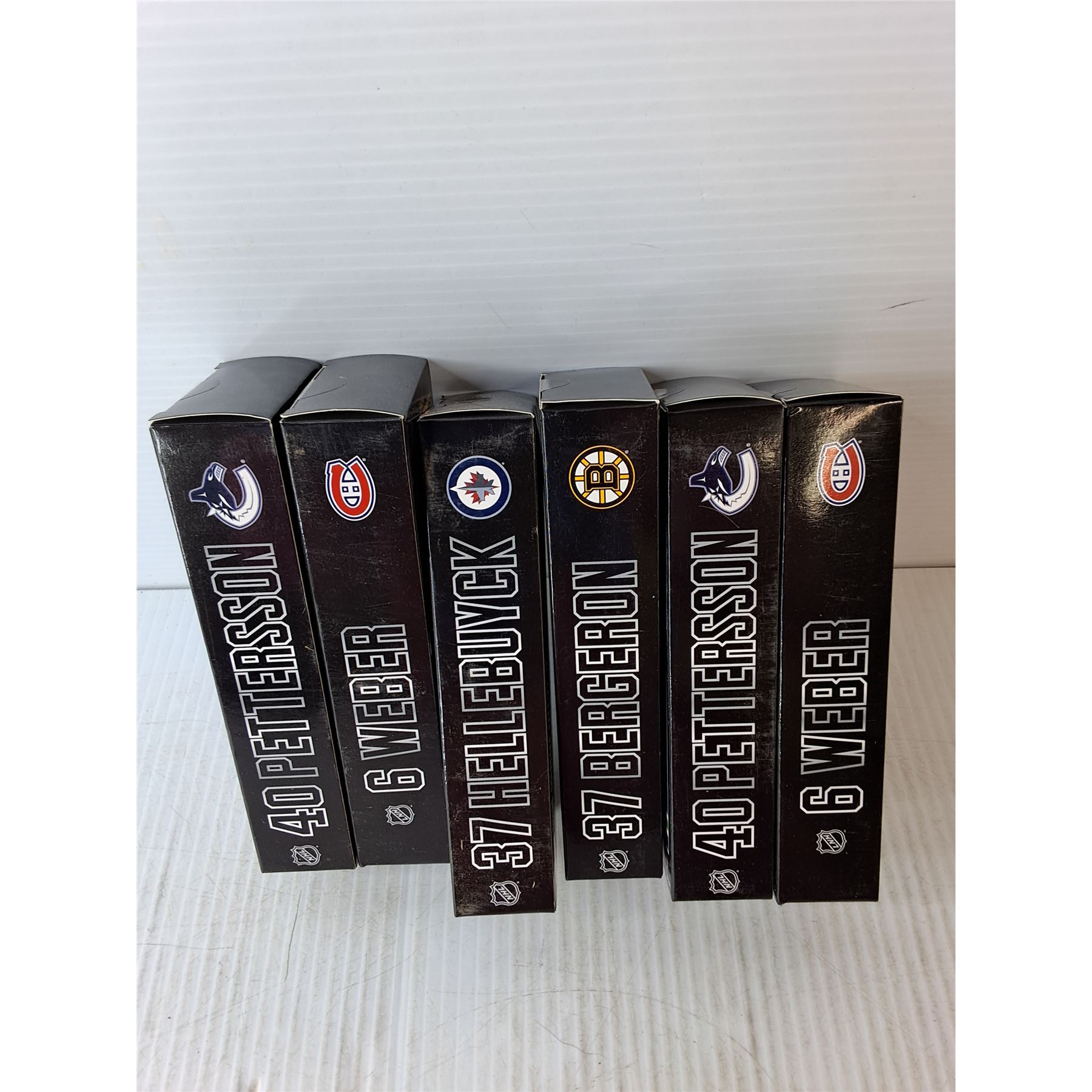 (6) Tim Horton's Sealed NHL Superstar Collectible Sticks- Pettersson, Weber, Bergeron, Hellebuyck