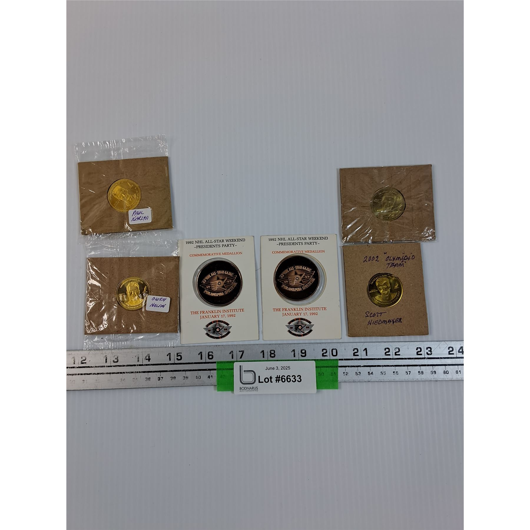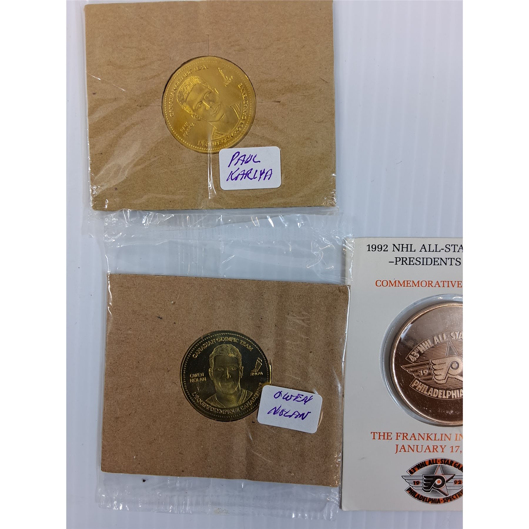 (6) Tokens/Coins: Franklin Institute 1992 Tokens (Owen Nolan, Kariya, Neidmayer)
