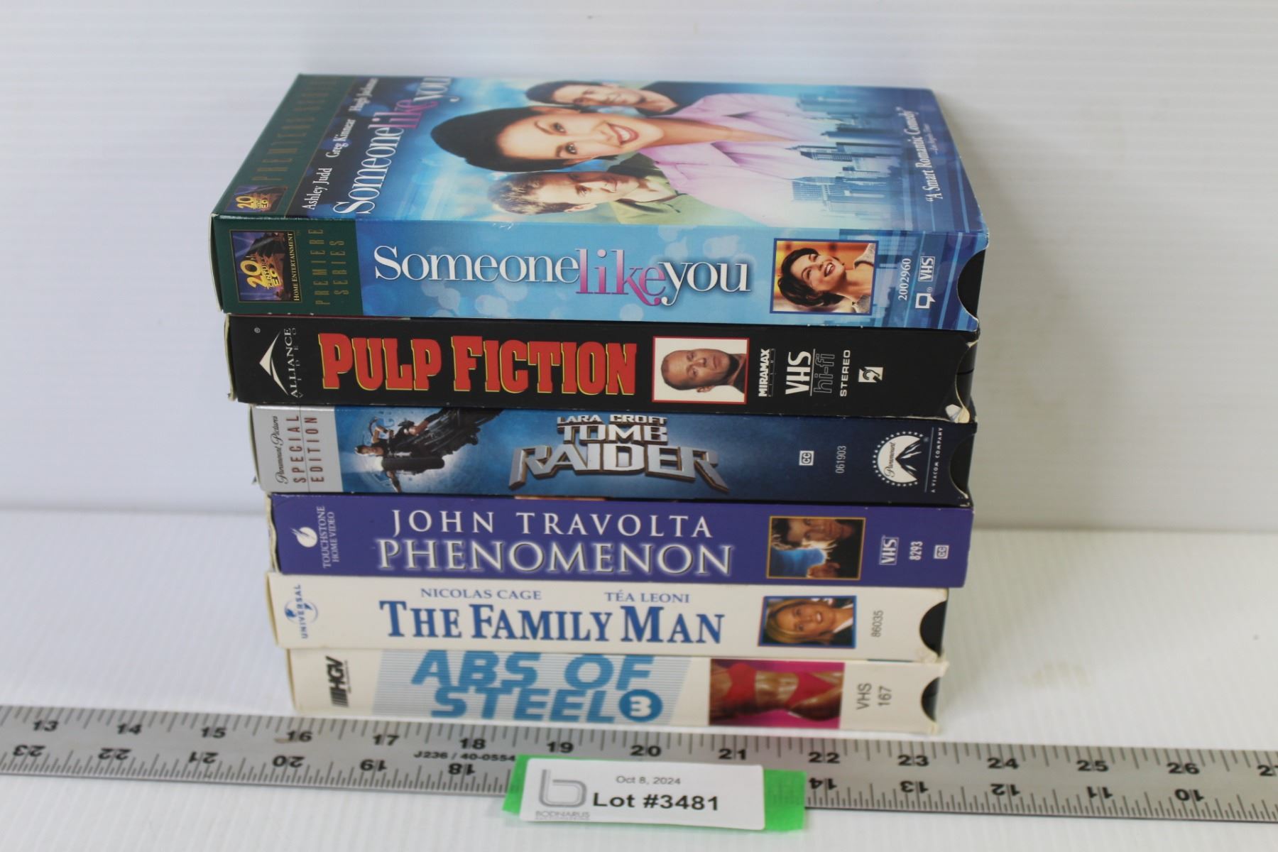 (6) VHS Tapes - The Family Man - Tomb raider - Phenomenon - Abs of Steel
