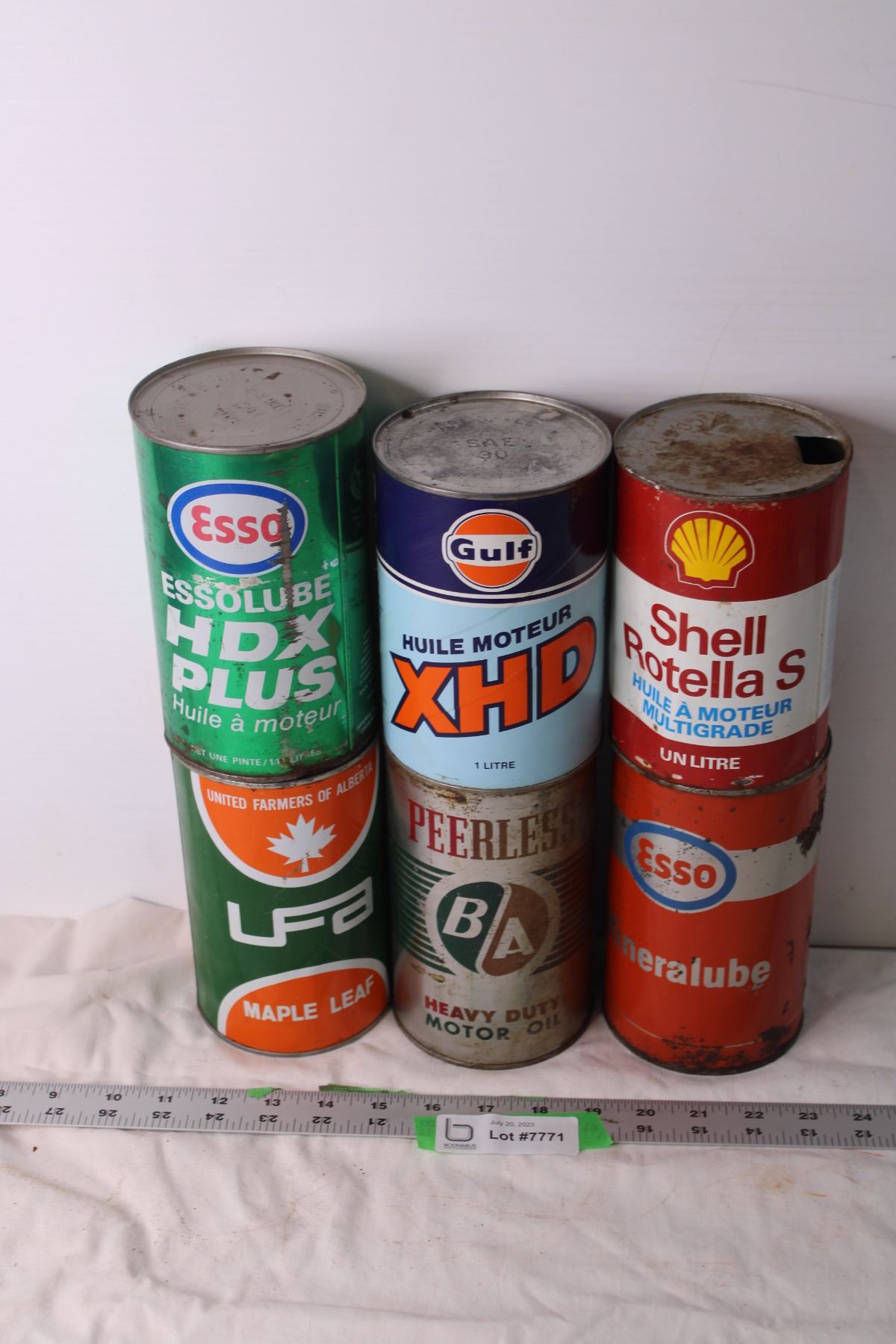 (6) Vintage Tin Oil Cans - Gulf, Esso