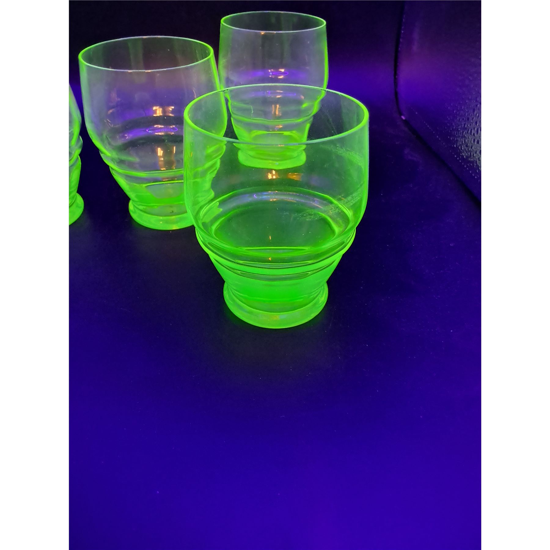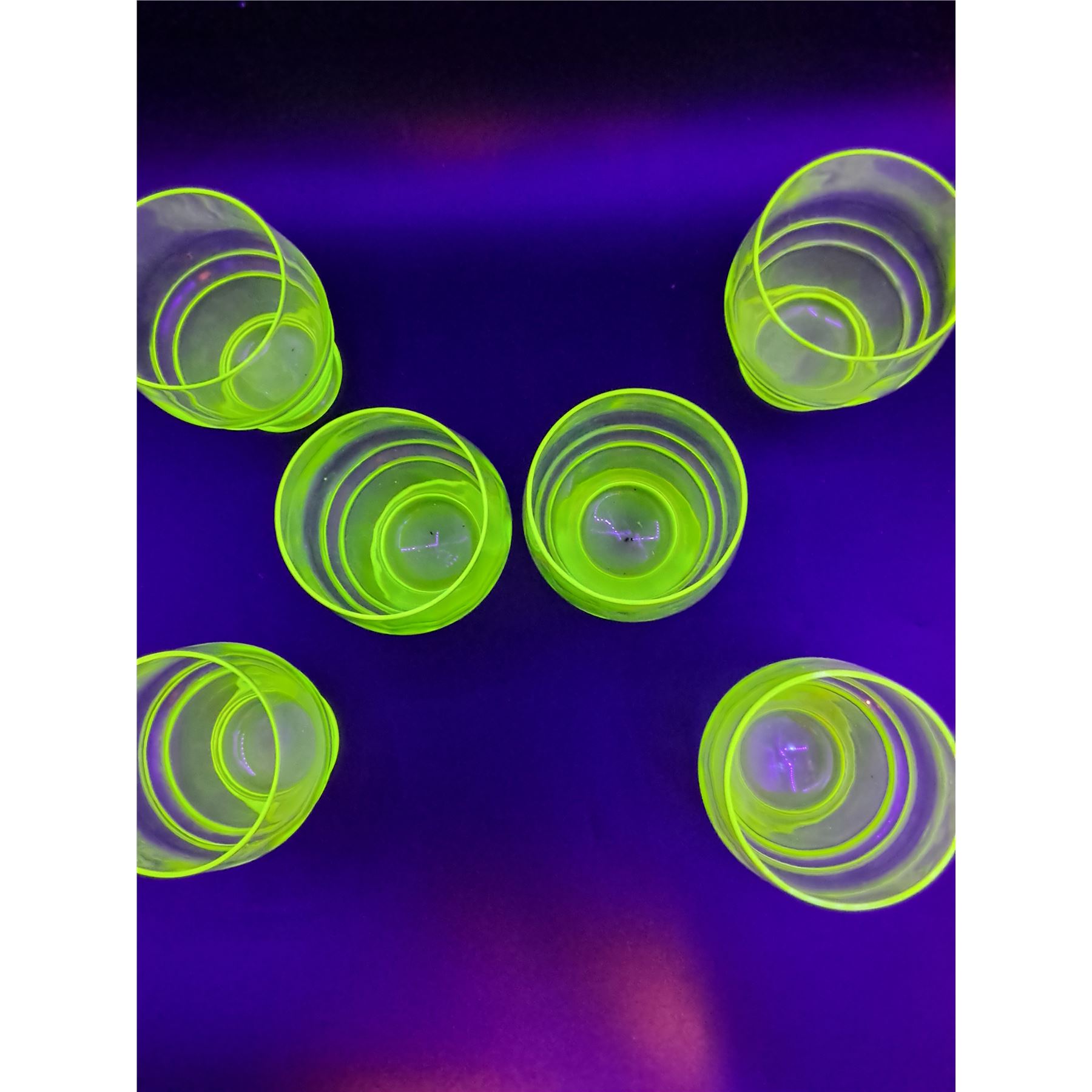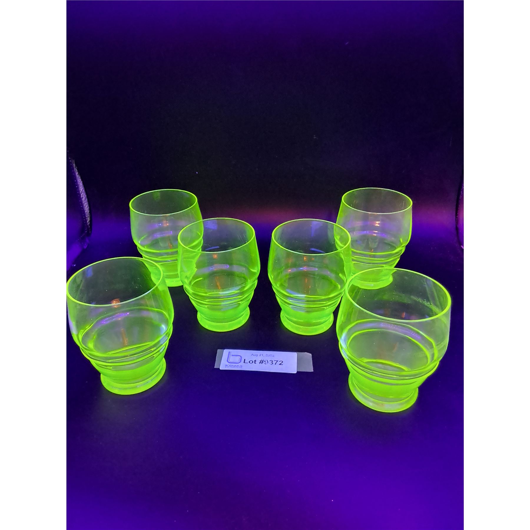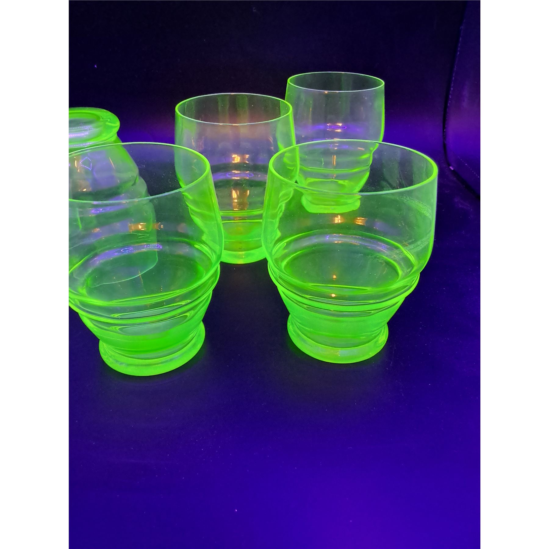 (6) Vintage Uranium Glass Liqueur Glasses Set - 4" Tall