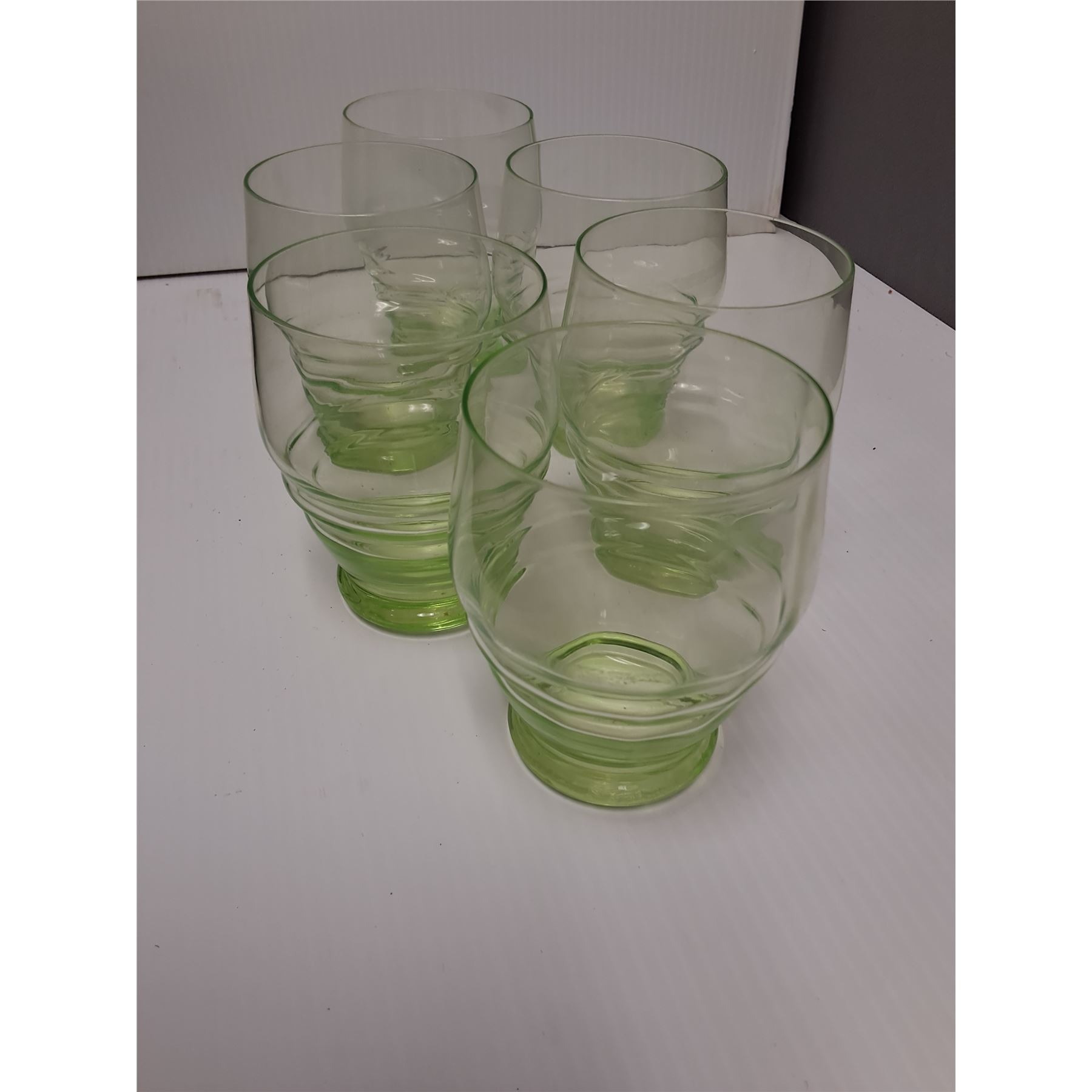 (6) Vintage Uranium Glass Liqueur Glasses Set - 4  Tall
