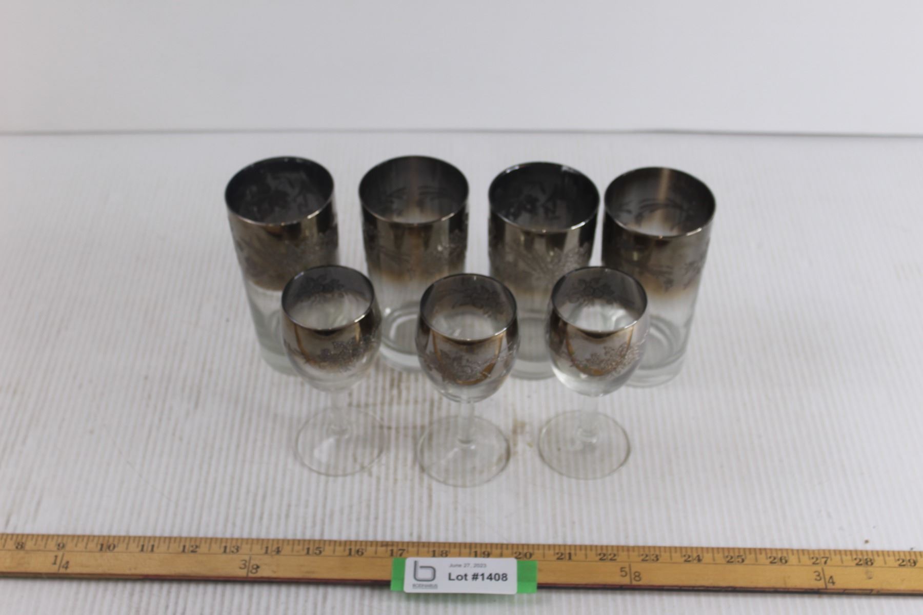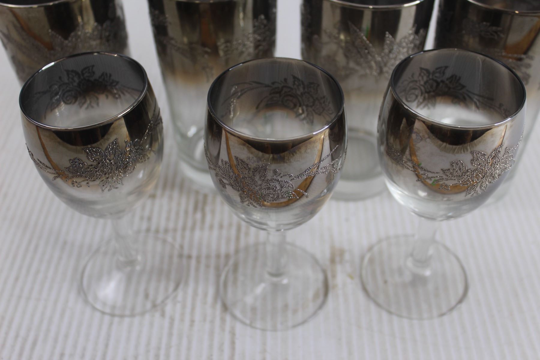 (6) Viteon Queens Lusterware Silver Ombre Highball Glasses with (3) Wine Glasses