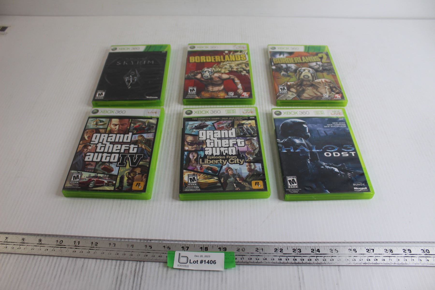 (6) Xbox 360 Games - Borderlands, GTA, Halo 3