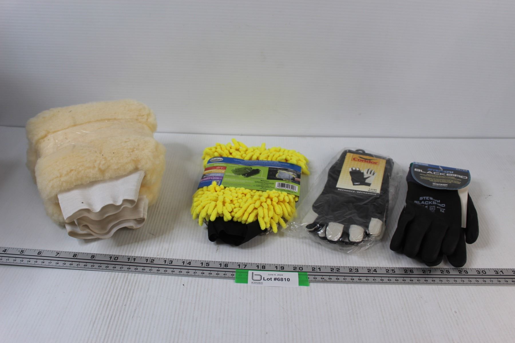 (4) Vehicle Shammys/Wash Mitts, (2) Work Gloves Size Large