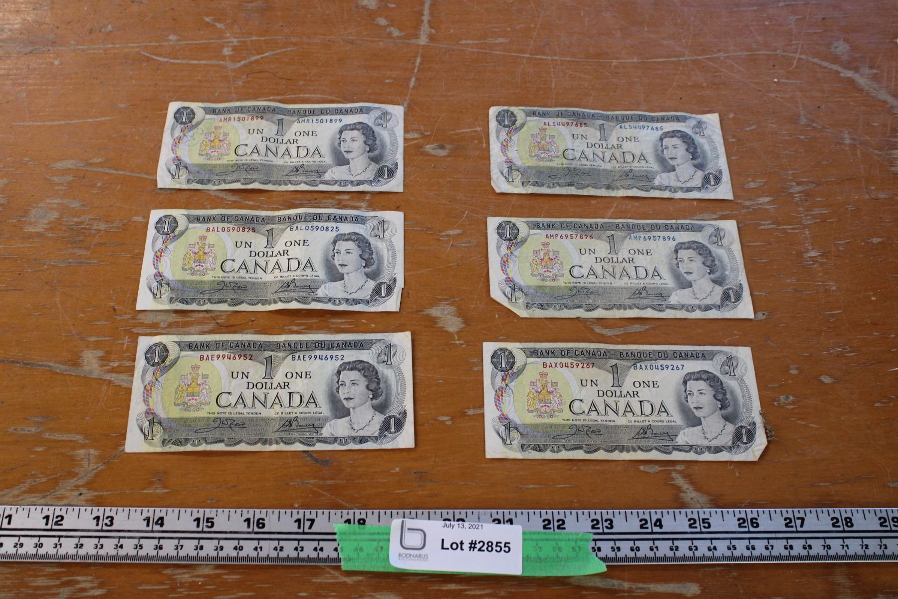6 1973 $1 Canadian Bills