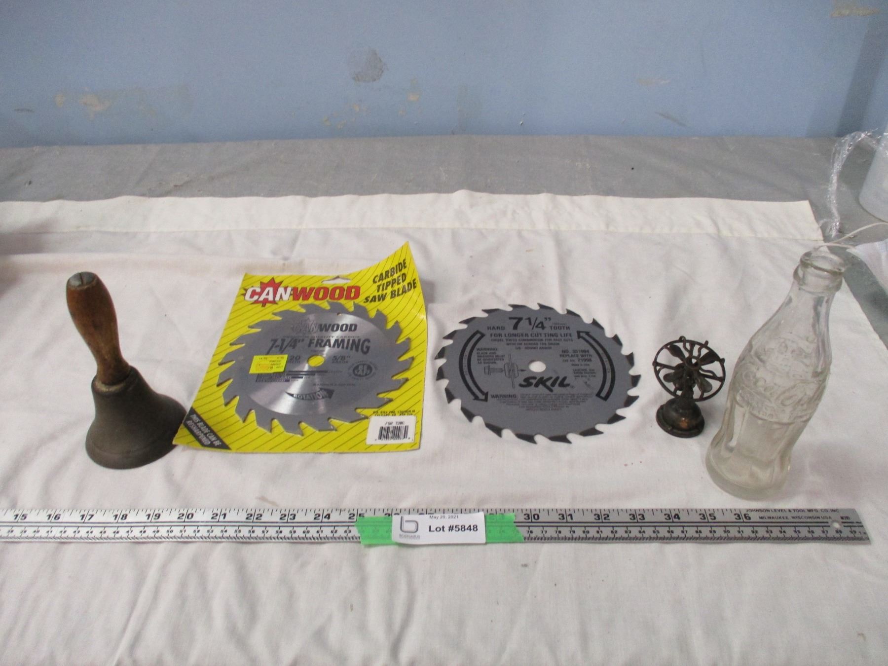 7 1/4" Saw Blades (1 New), Coca Cola Bottle, Plus Misc