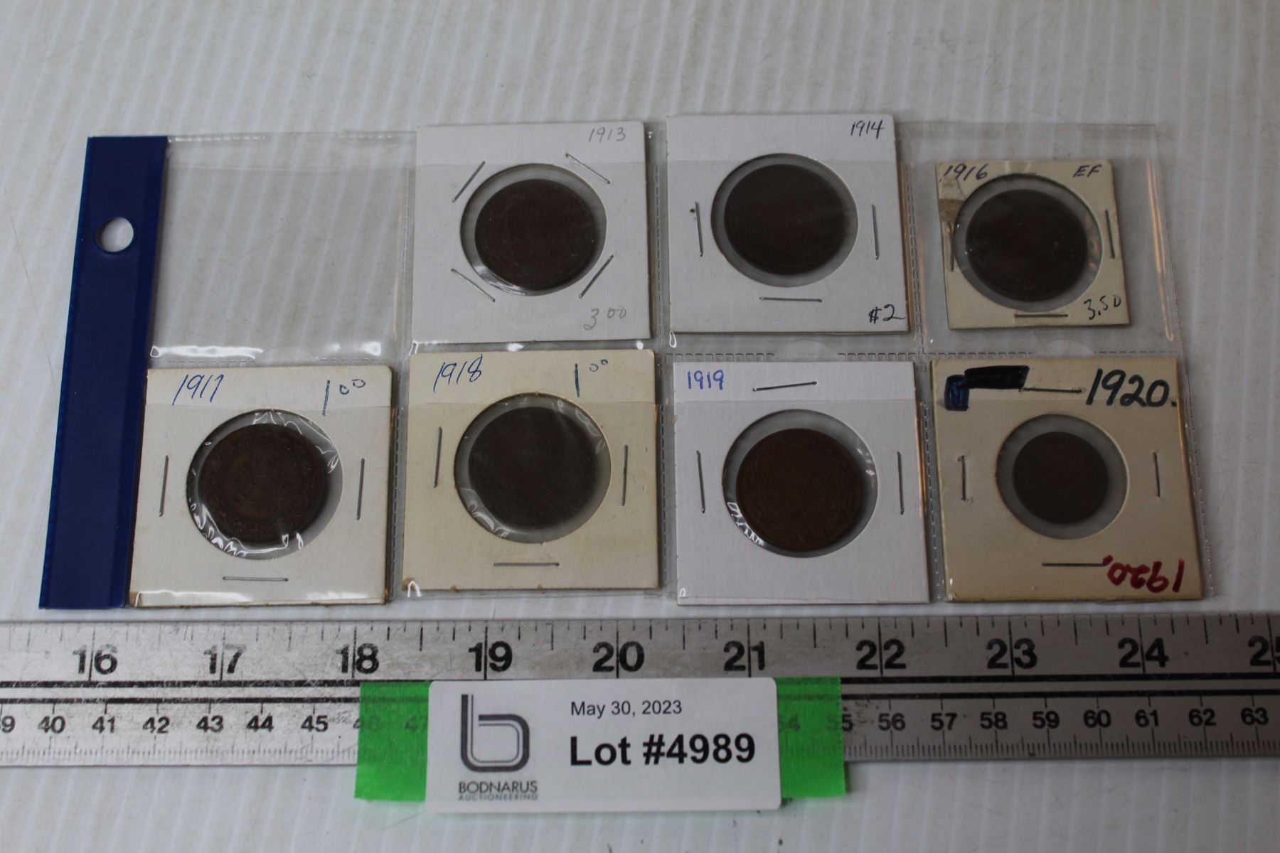 (7) 1 Cent Coins (1913 - 14 - 16 - 17 - 18 - 19 - 20)
