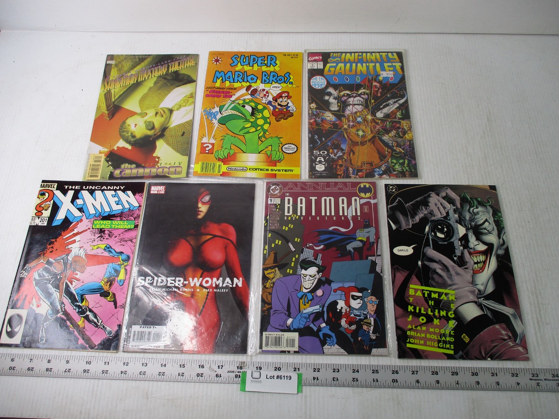 (7) Assorted Comics (X-men, Spider-woman, Batman, Super Mario Bros.)