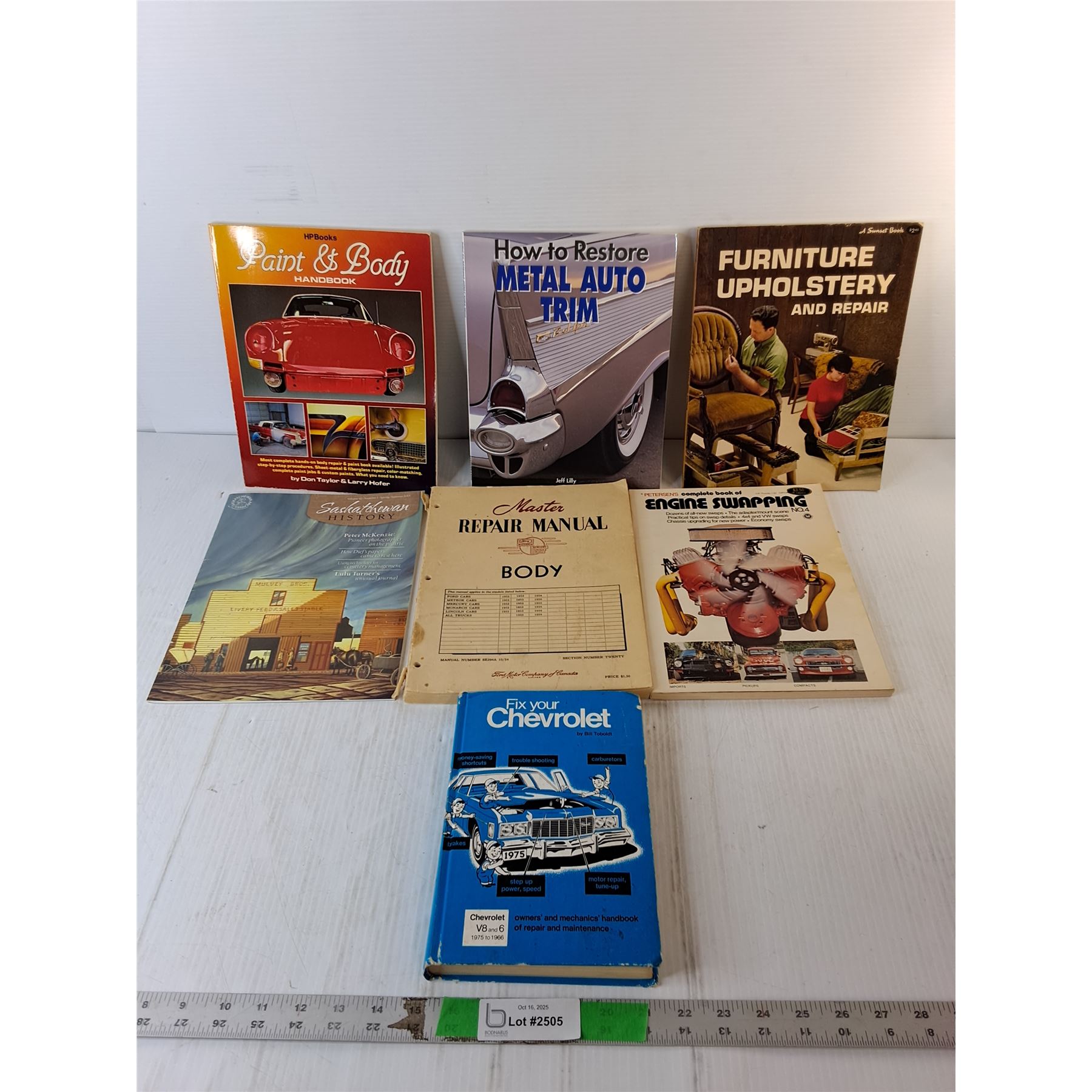(7) Books/Magazines- Automotive, Sask. History, Upholstery Repair