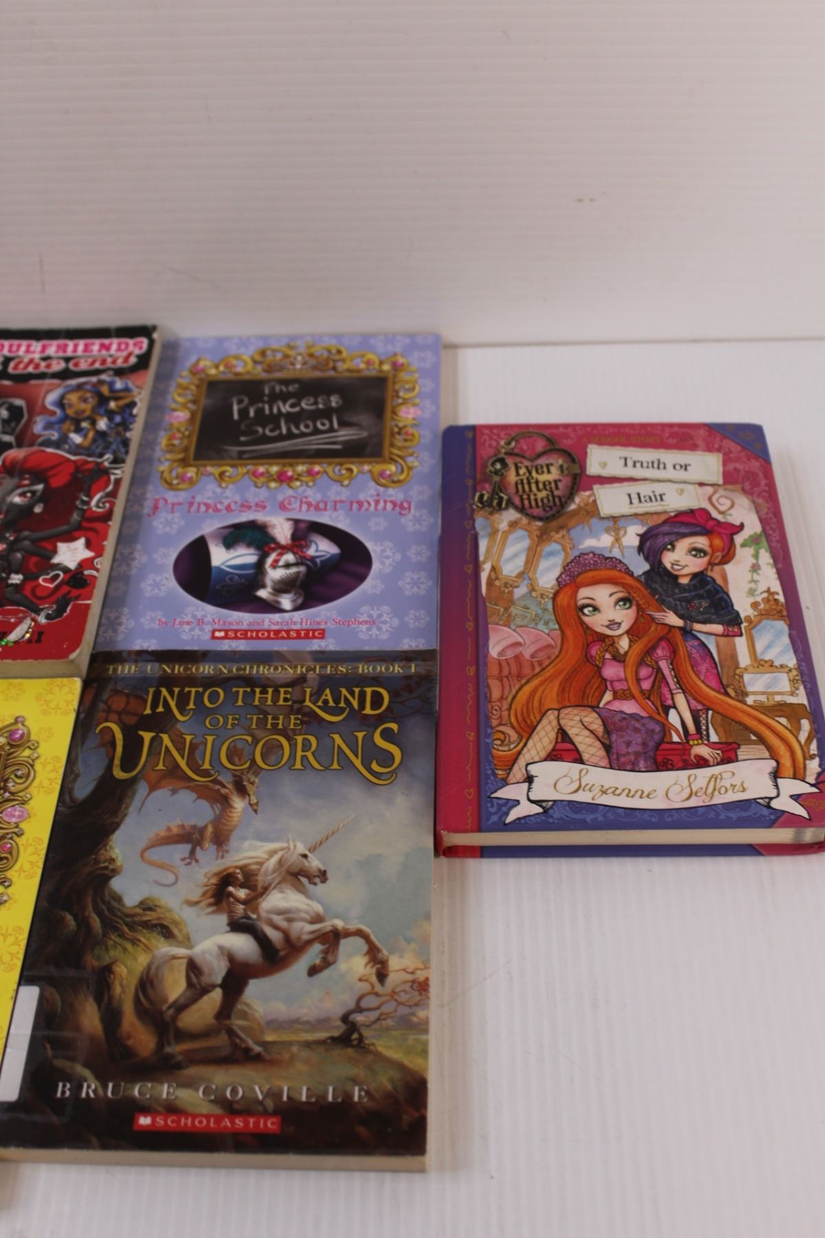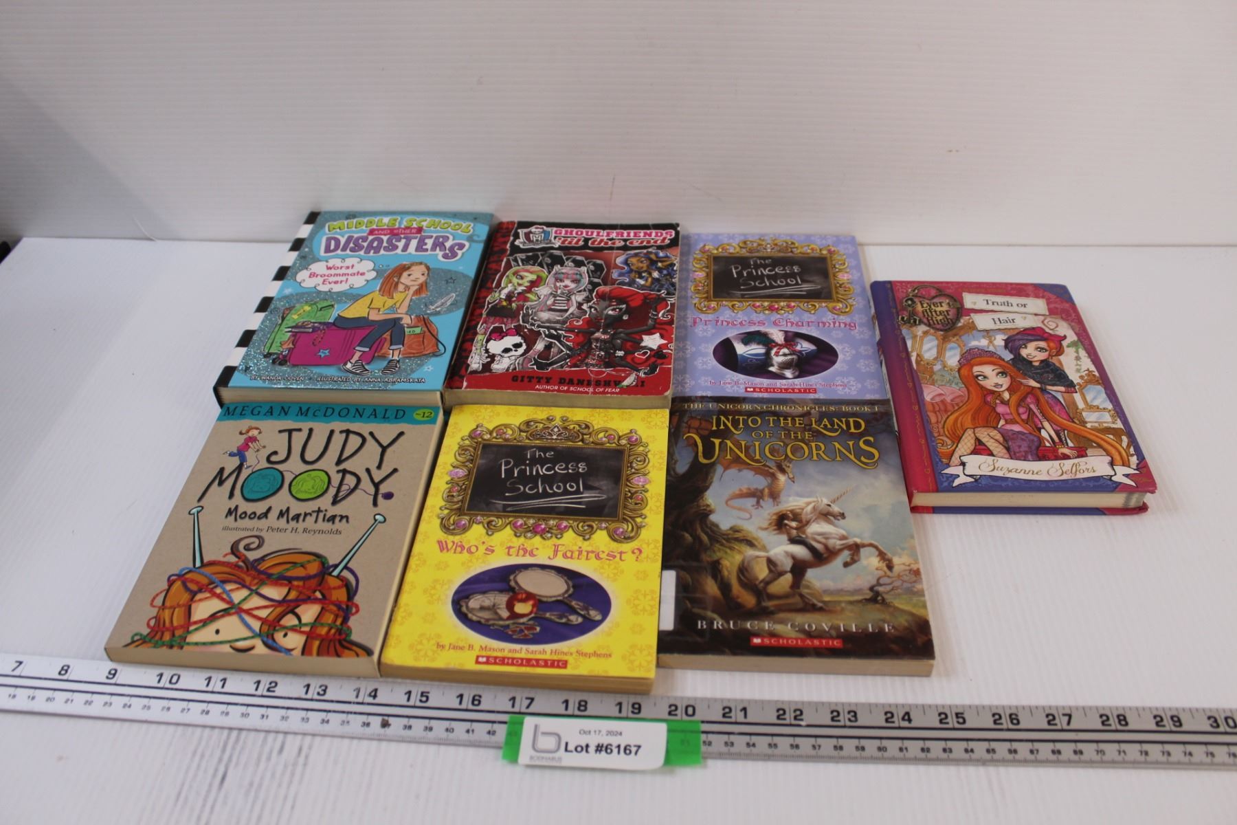 (7) Children's Books: (Girls Lot) Judy Moody, Monster High, Unicorns, Princess, Middle School Disasters