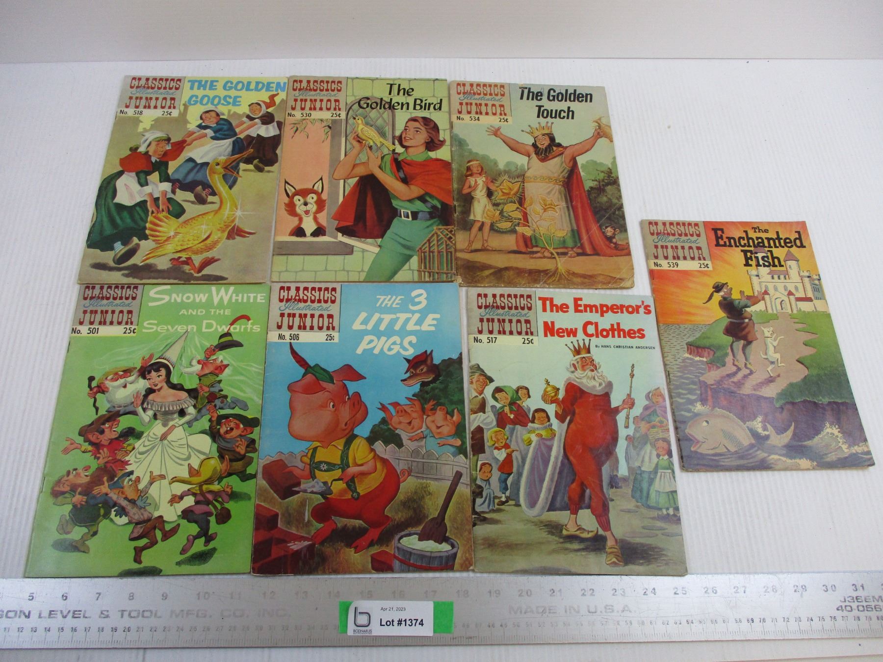(7) Classic Illustrated Junior Comic Books - The 3 little Pigs, Snow White & Seven Dwarfs, The Emperor’s New Clothes, The Golden Goose, The Golden Bird, The Golden Touch, The Enchanted Fish