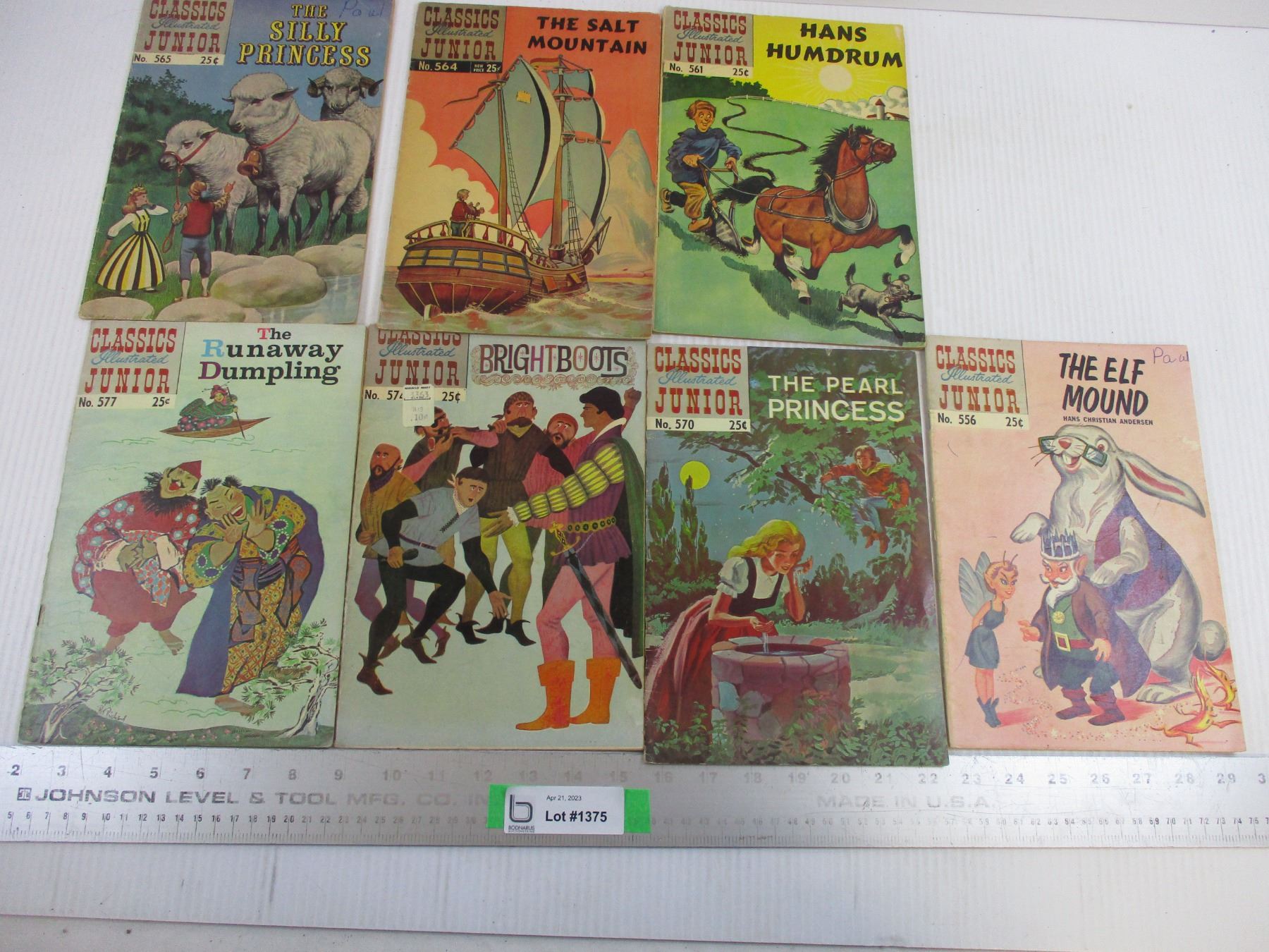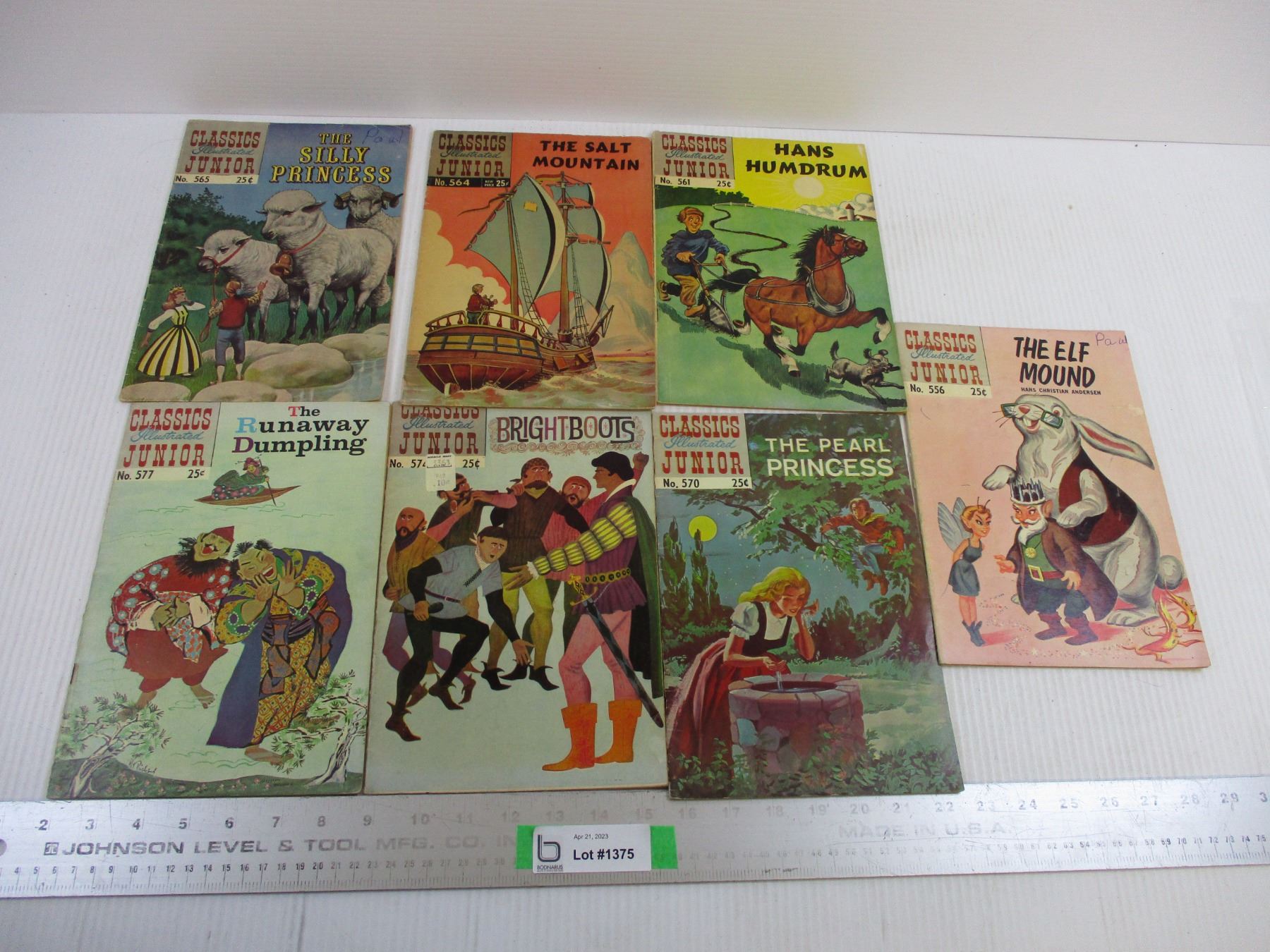 (7) Classic Illustrated Junior Comic Books - The Elf Mound, Hans Humdrum, The Salt Mountain, The Silly Princess, The Pearl Princess, Brightboots, The Runaway Dumpling