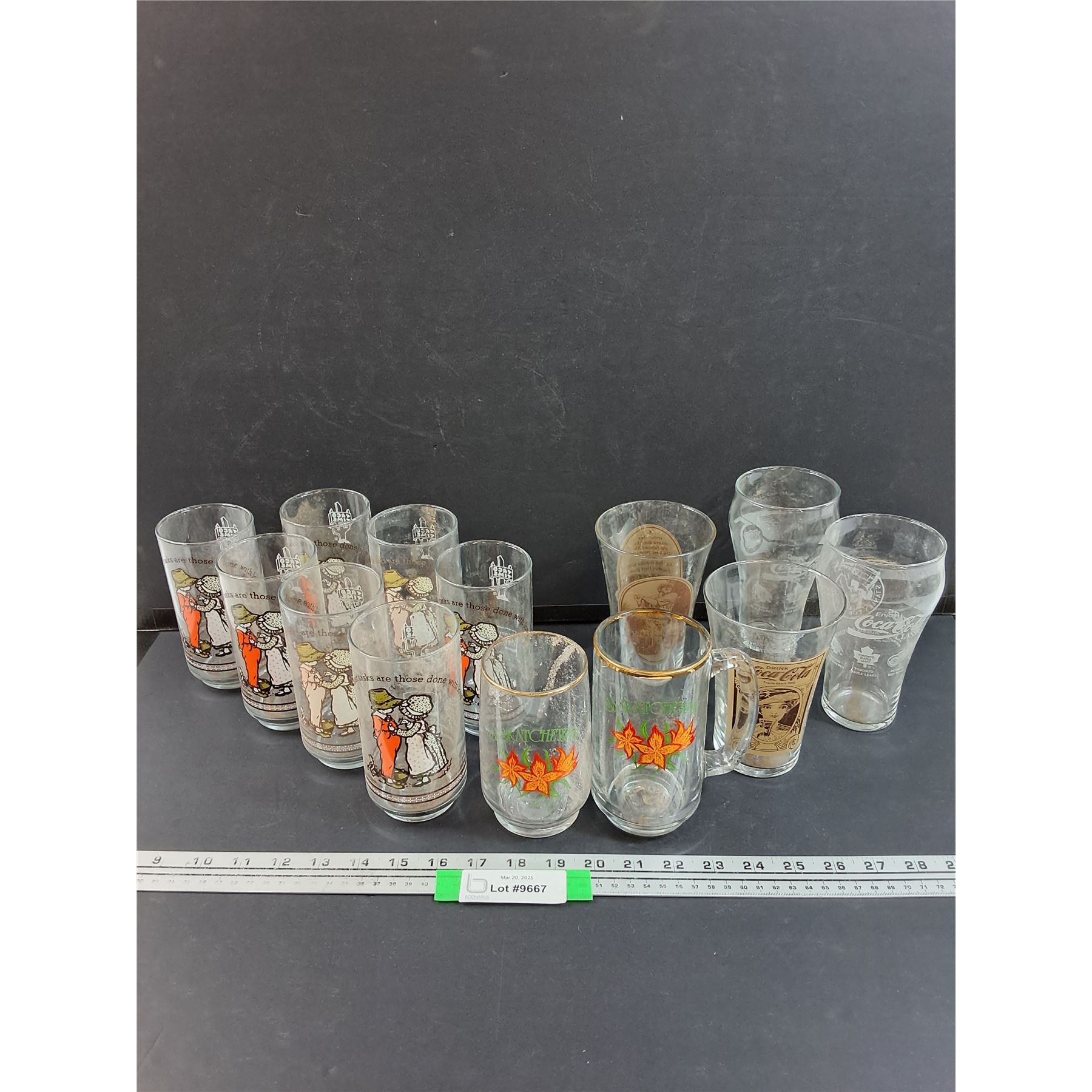 (7) Holly Hobby Glasses, (4) Coca Cola Glasses & (2) Saskatchewan Prairie Lily Glasses