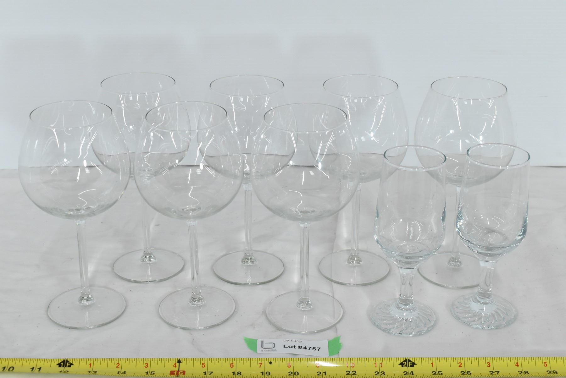 7 Matching Wine Glasses & 2 Thick Glasses