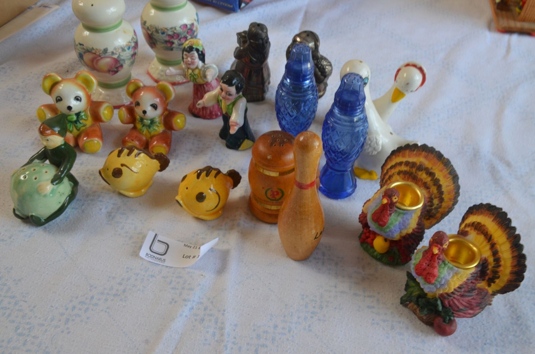 7 Pair Salt and Pepper Shakers candle holder and Misc.