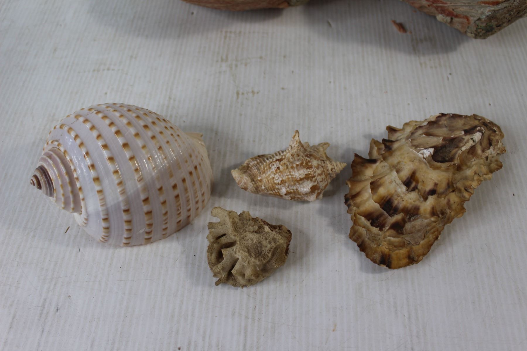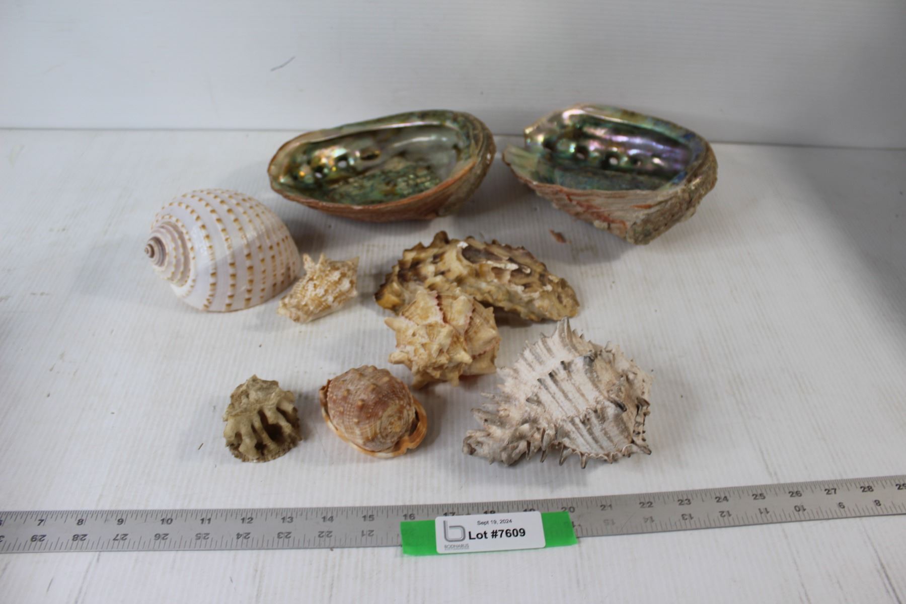(7) Seashells, (2) Hollowed Out Clam Shells