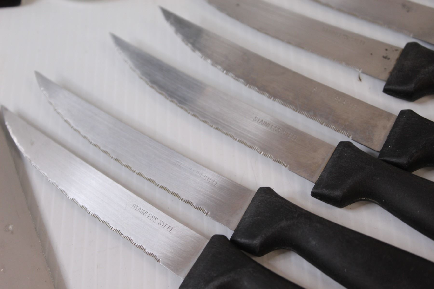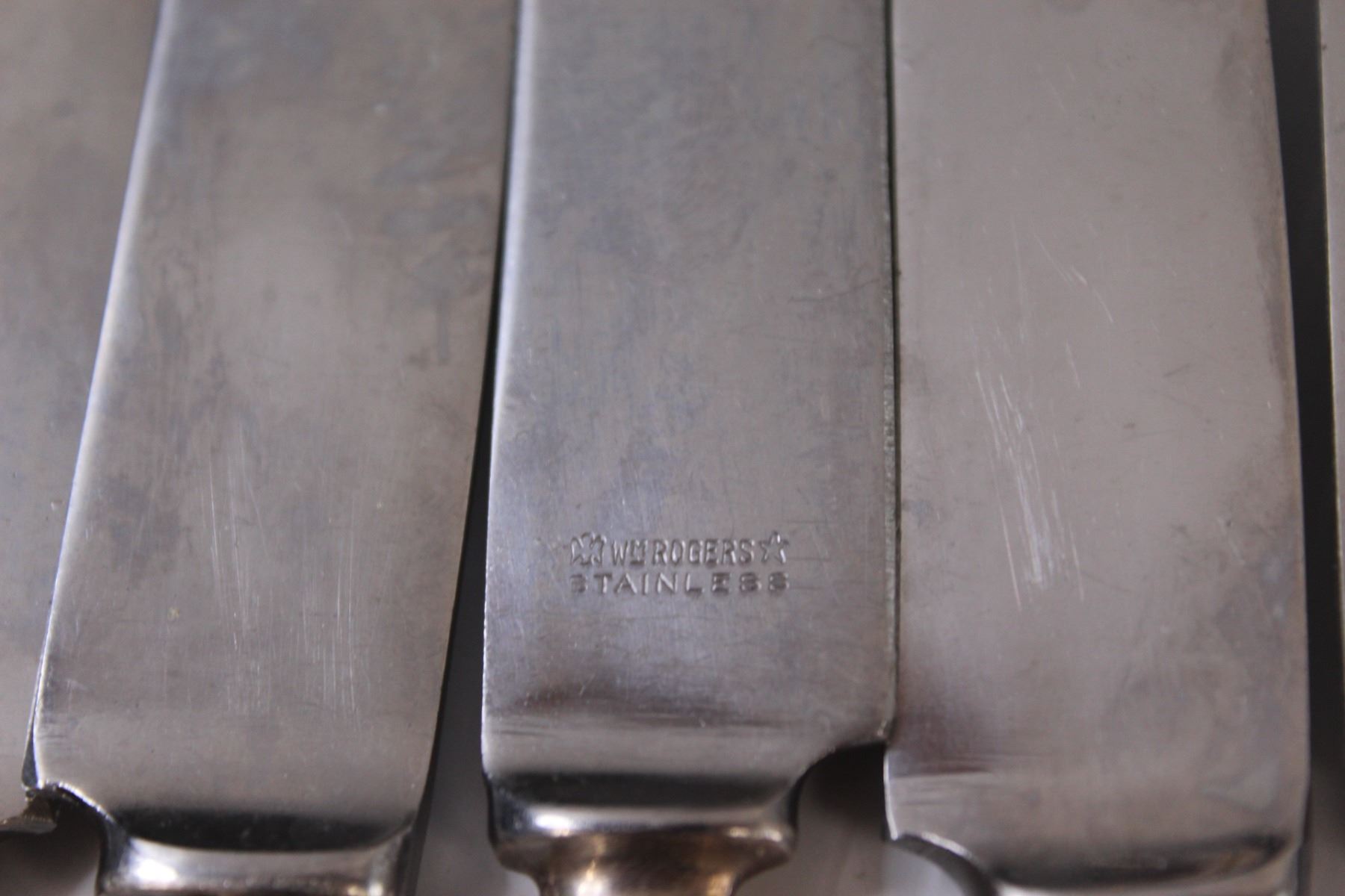 (7) Stainless Steel Steak Knives, (8) WM Rogers Butter Knives, Cutlery Organizer, Sugar Shaker, Peel