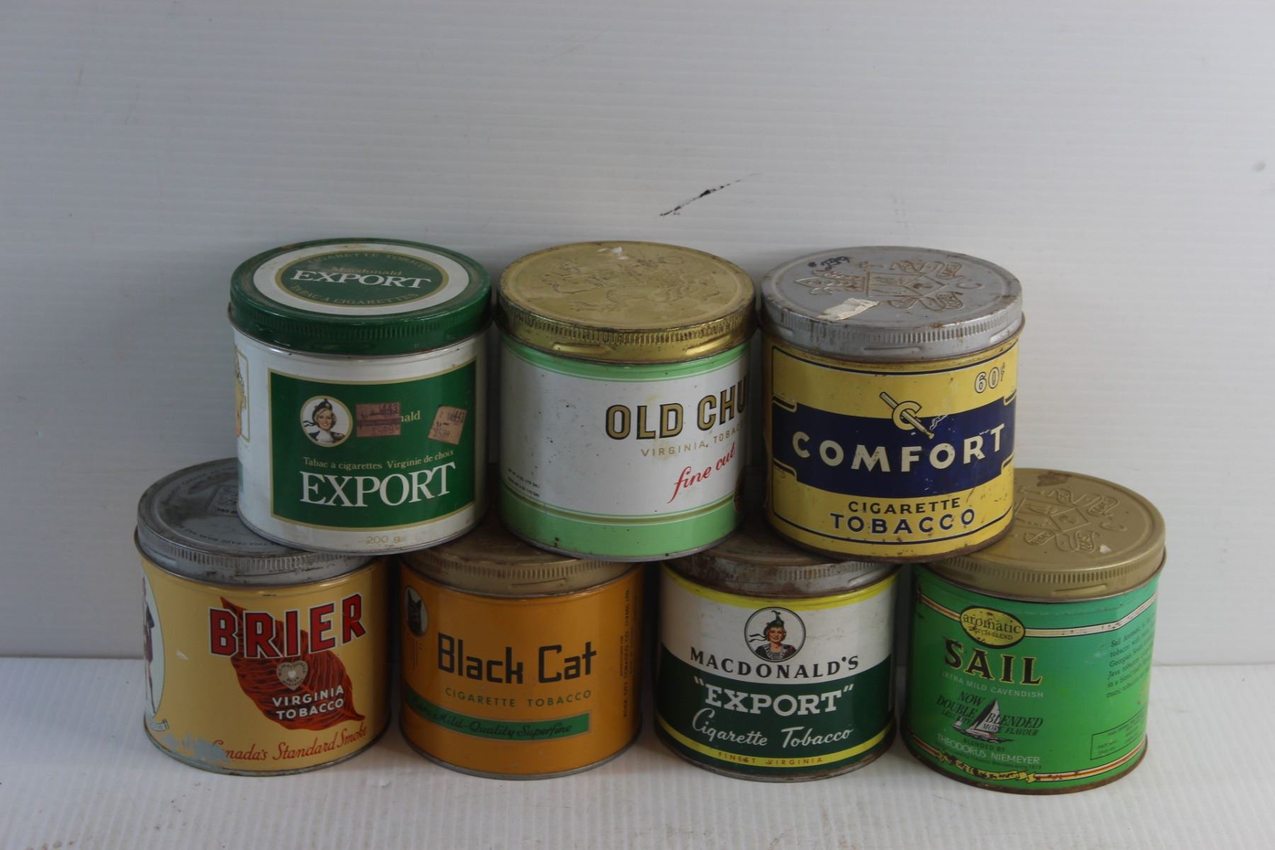 (7) Vintage Tobacco Tins - Black Cat, Old Chum and MacDonald