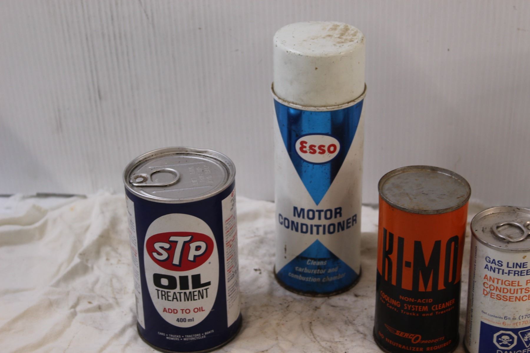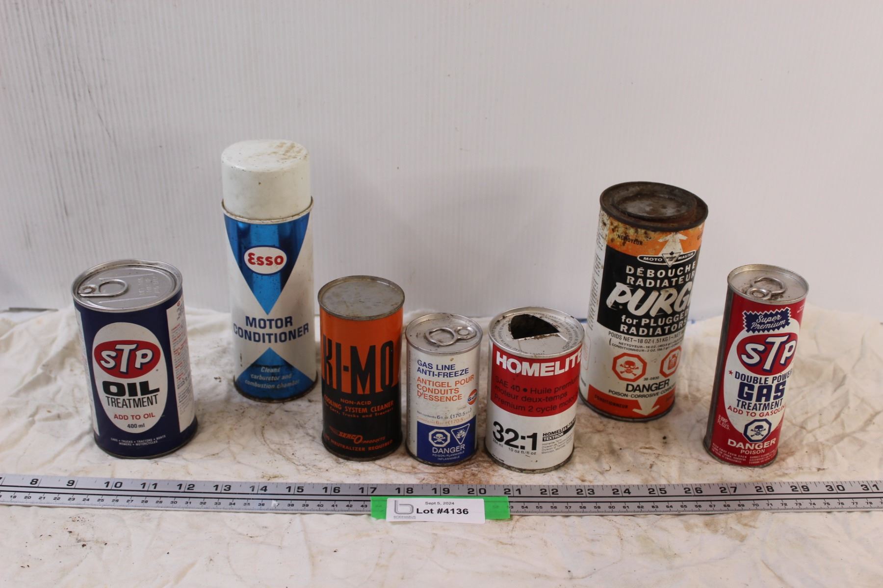 (7) Vintage Vehicle Fluid Cans: STP, Esso, HomeLite, Moto-Master - Some Full, Some Empty