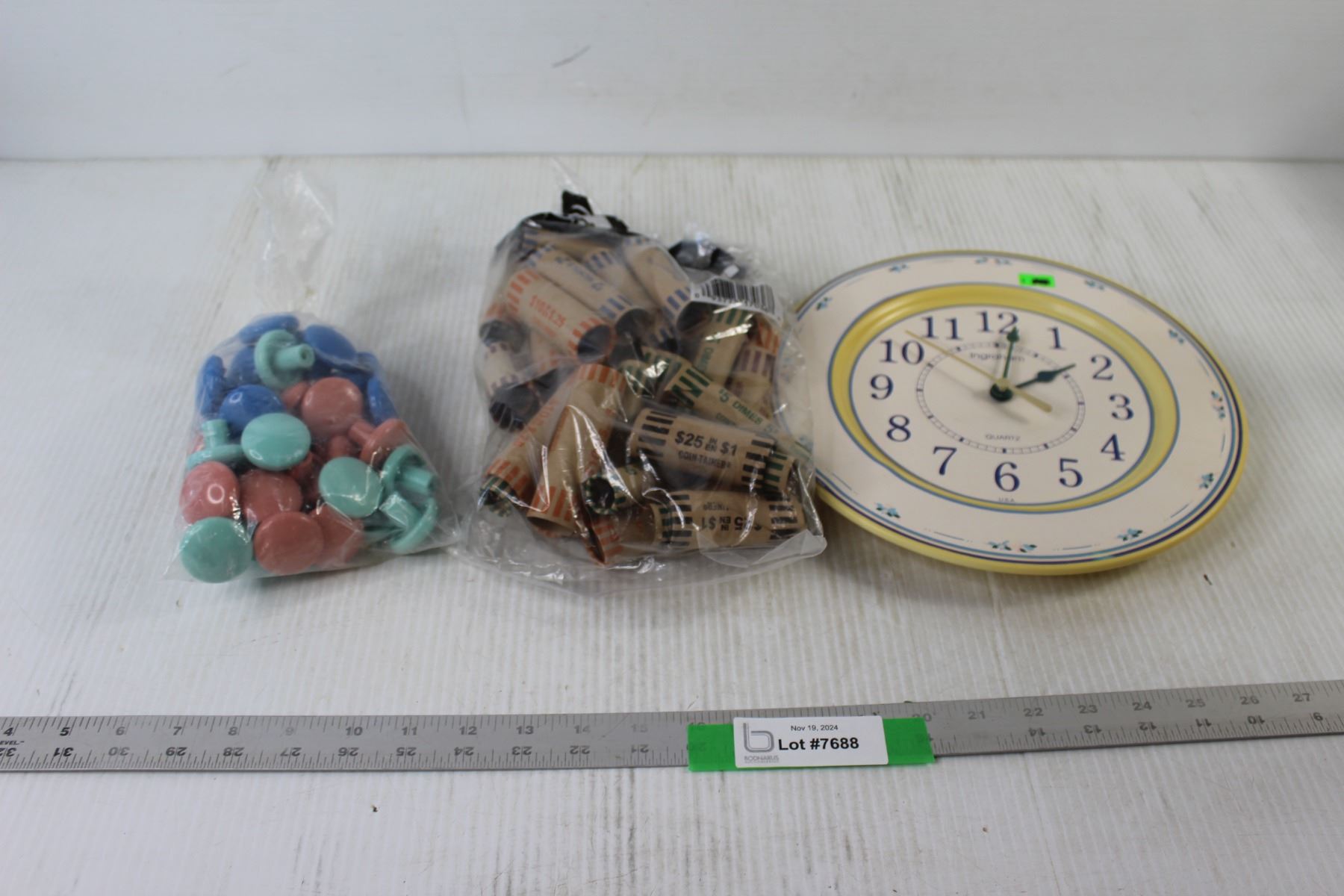 Clock - As Is, Coin Rolls, Drawer Pulls