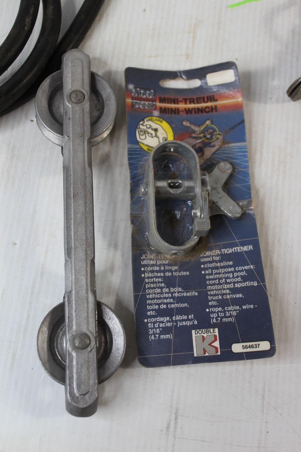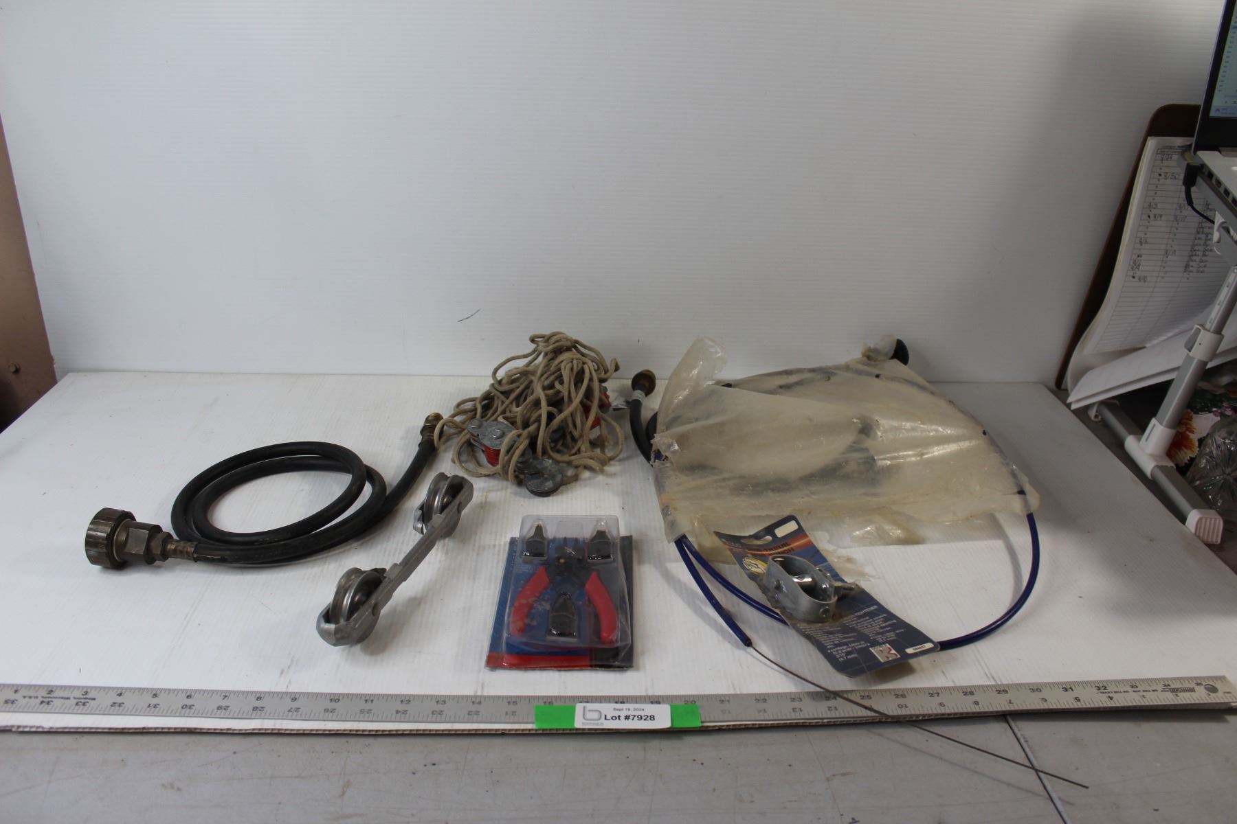 Throttle Cable, Ratchet Strap, Mini Wrench, Pliers, Dolly/Roller Wheels, Hose