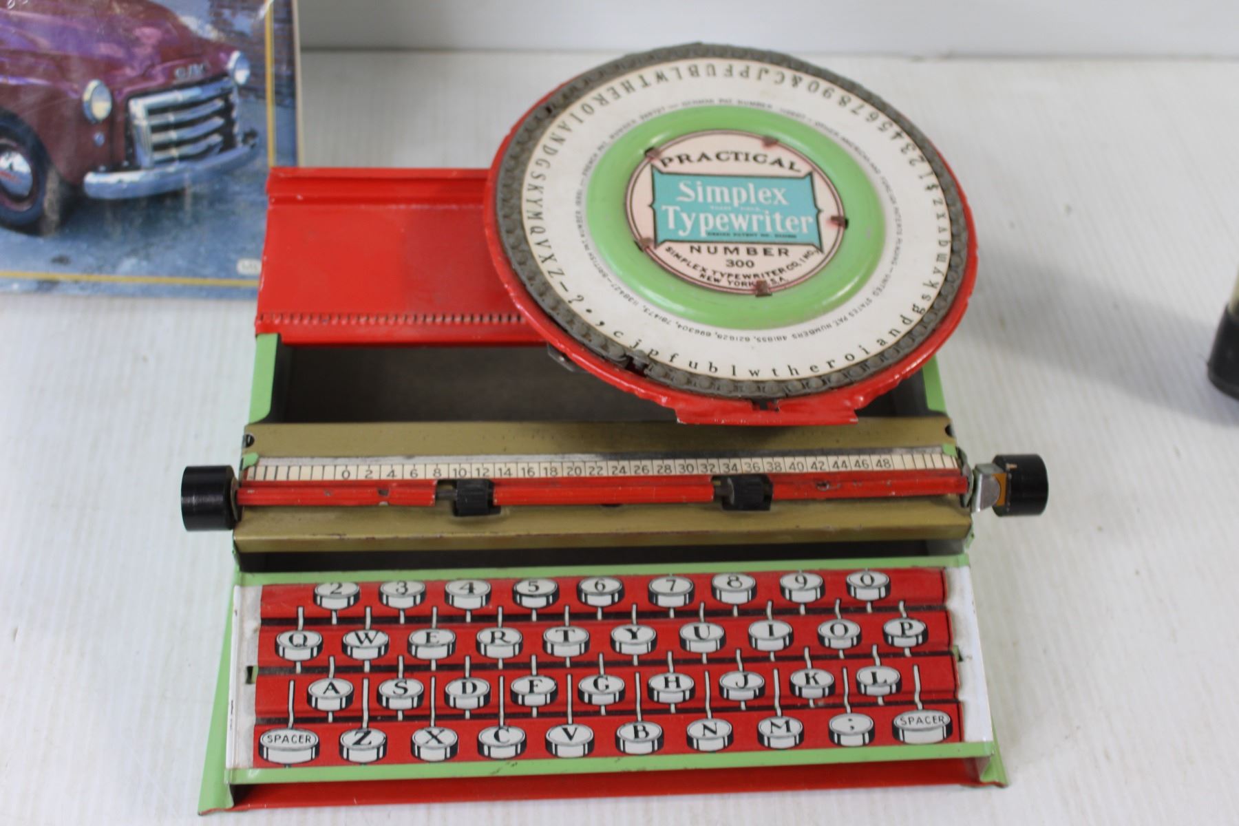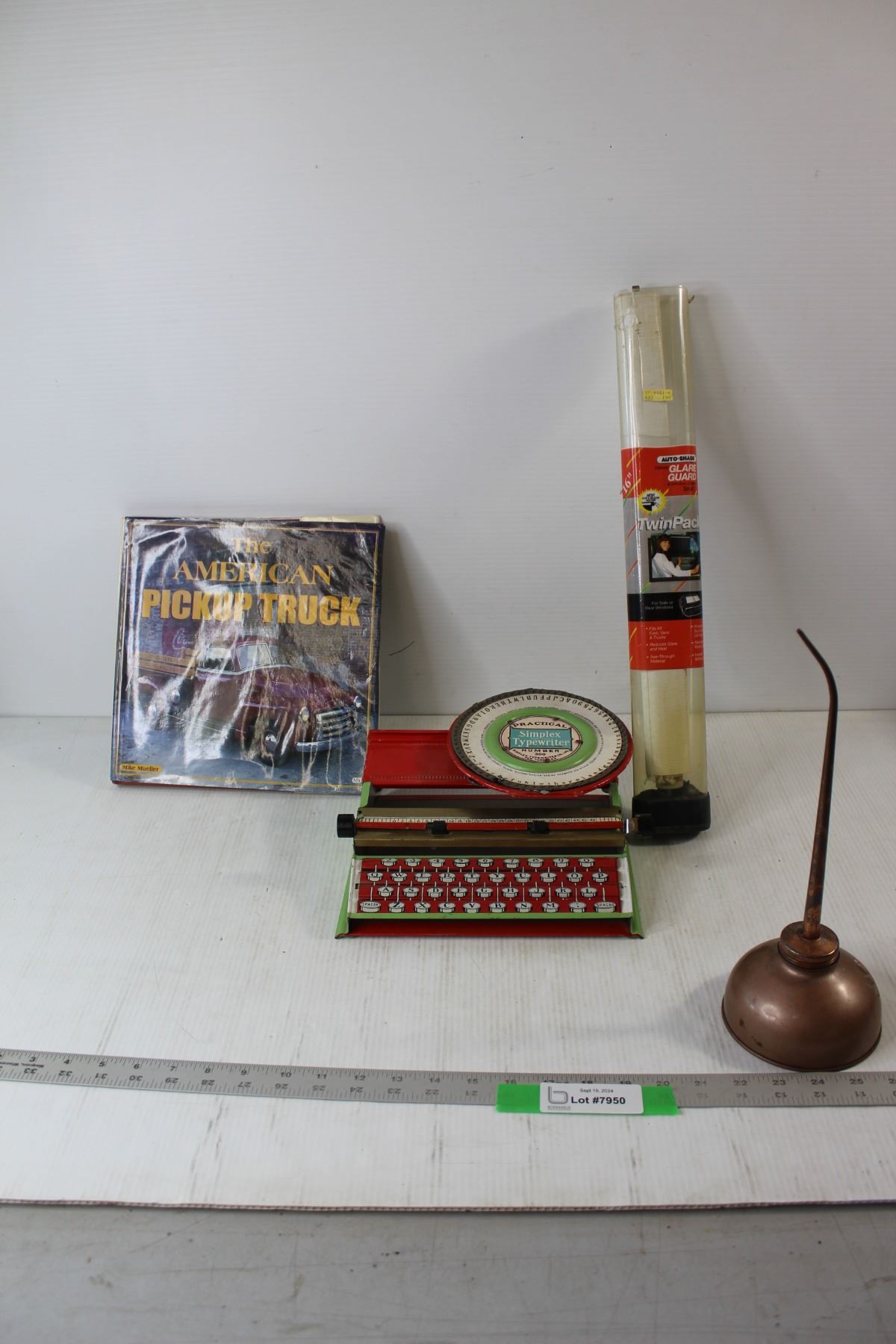 Simplex Toy Typewriter, Car Window Shade, Hand Oiler Can, The American Pickup Truck Book